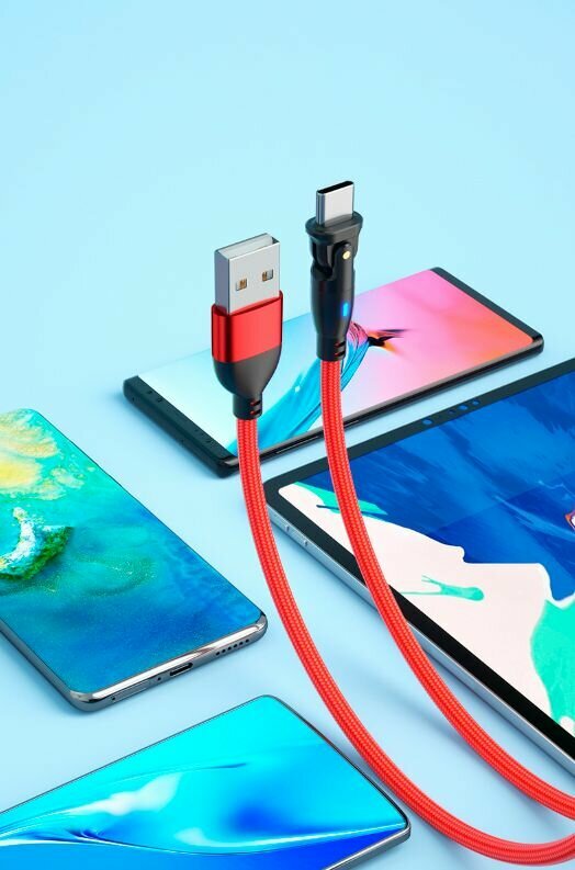 Купить Кабель USB Type-C с поворотным коннектором, передача данных, быстрая зарядка 3А, длина 3м