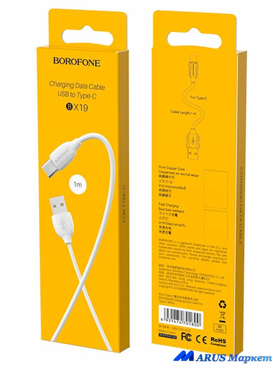 Кабель BOROFONE BX19 White (1шт.) USB Type-C / USB 2.0 Type-A для быстрой зарядки смартфонов DOOGEE (select models) интересное: