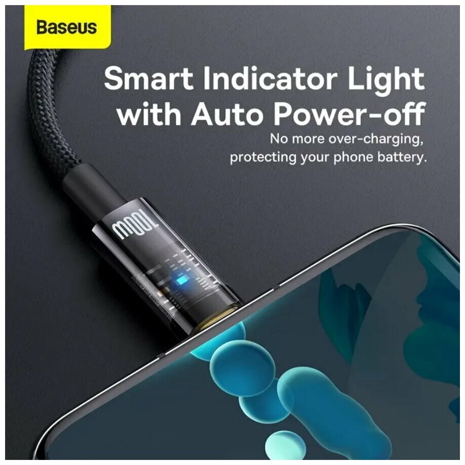 Кабель Baseus Explorer Series Auto Power-Off Fast Charging Data Cable USB to Type-C 100W 2m Black (CATS000301) интересное: