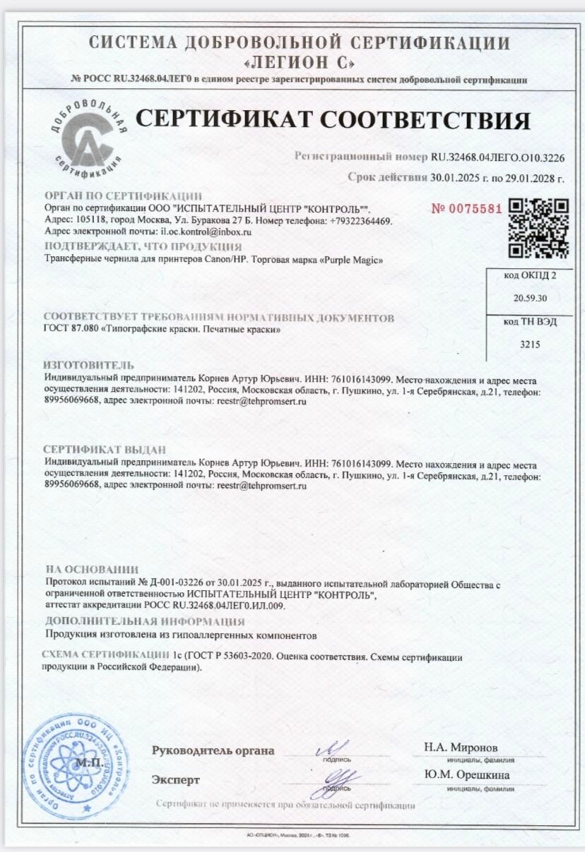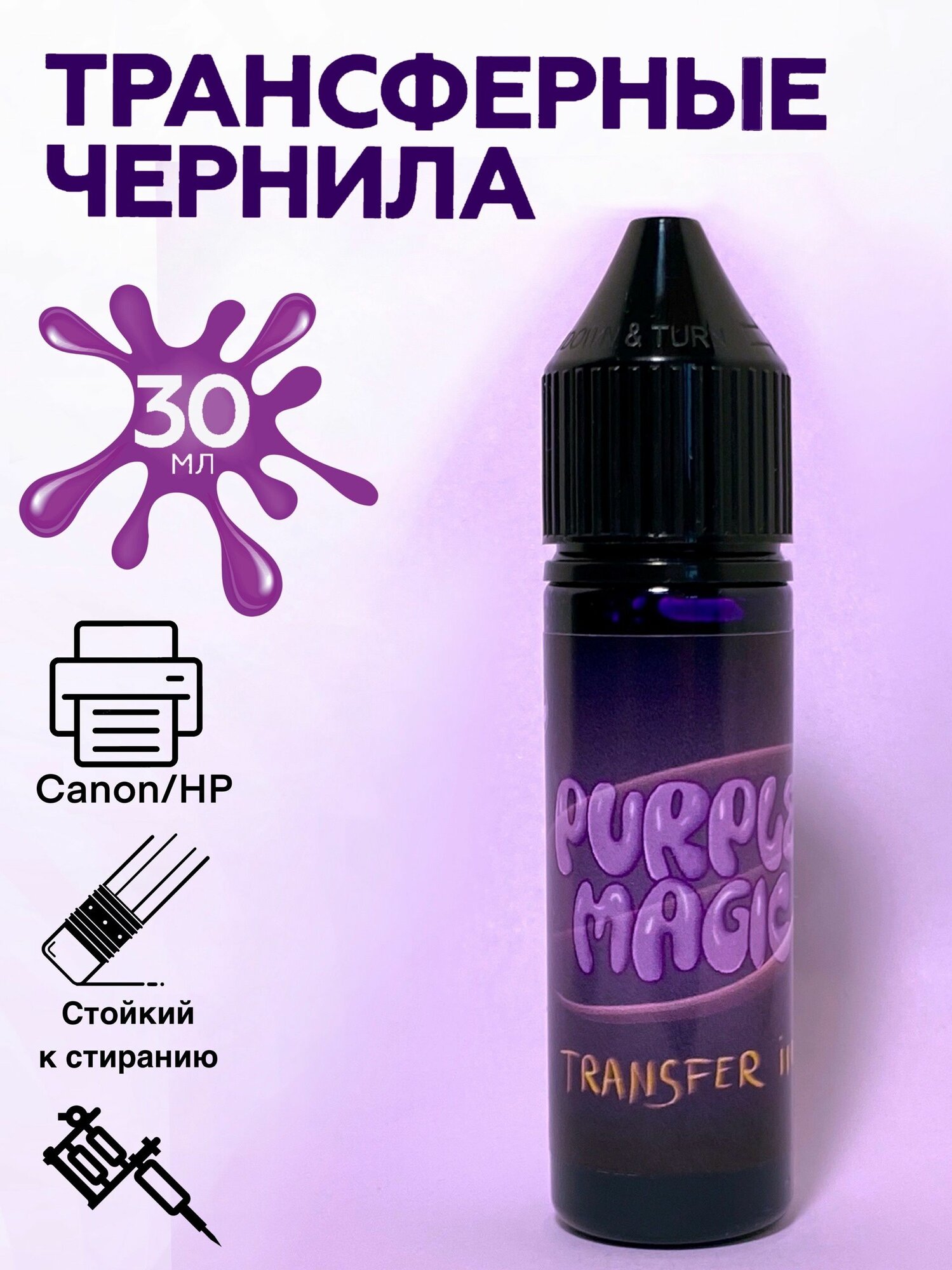 Purple Magic - Transfer ink трансферные чернила для принтеров Canon/HP, 30мл интересное: