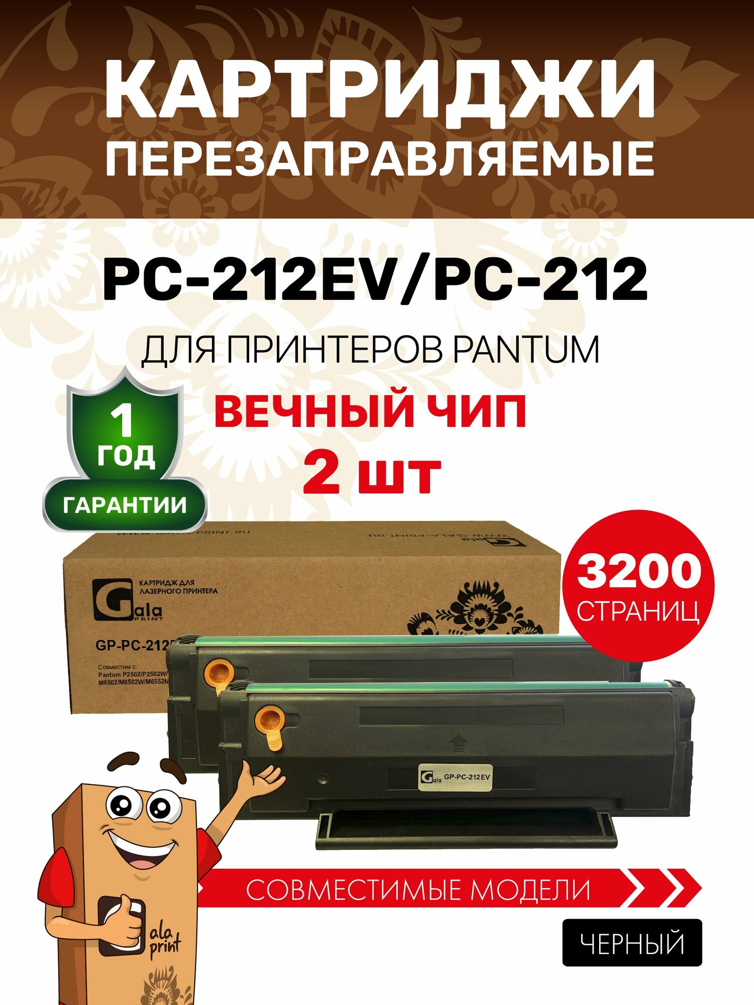 Картридж GalaPrint PC-212EV / PC-212 (2 штуки) для Pantum P2502/P2502W/M6502/M6502W/M6552NW лазерный, совместимый интересное: