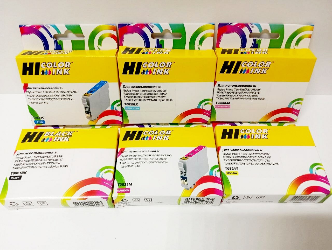 Комплект картриджей Hi-Black 6 цветов для Epson T50, R270, R290, R295, R390, RX590 интересное: