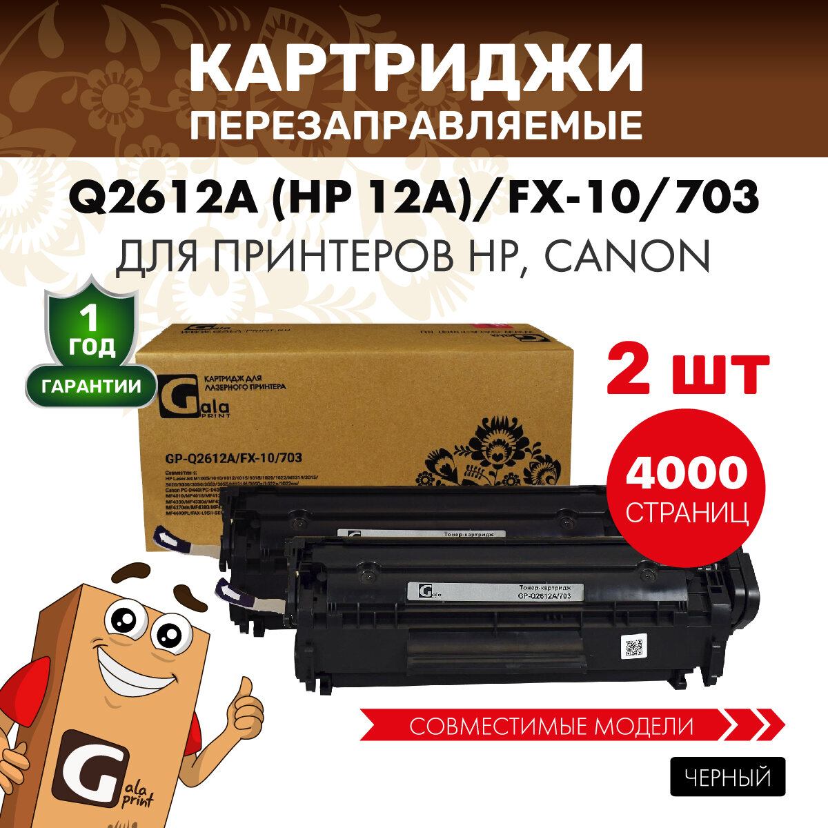Картридж GalaPrint (2 штуки) Q2612A (HP 12A)/FX-10/703 лазерный, совместимый интересное: