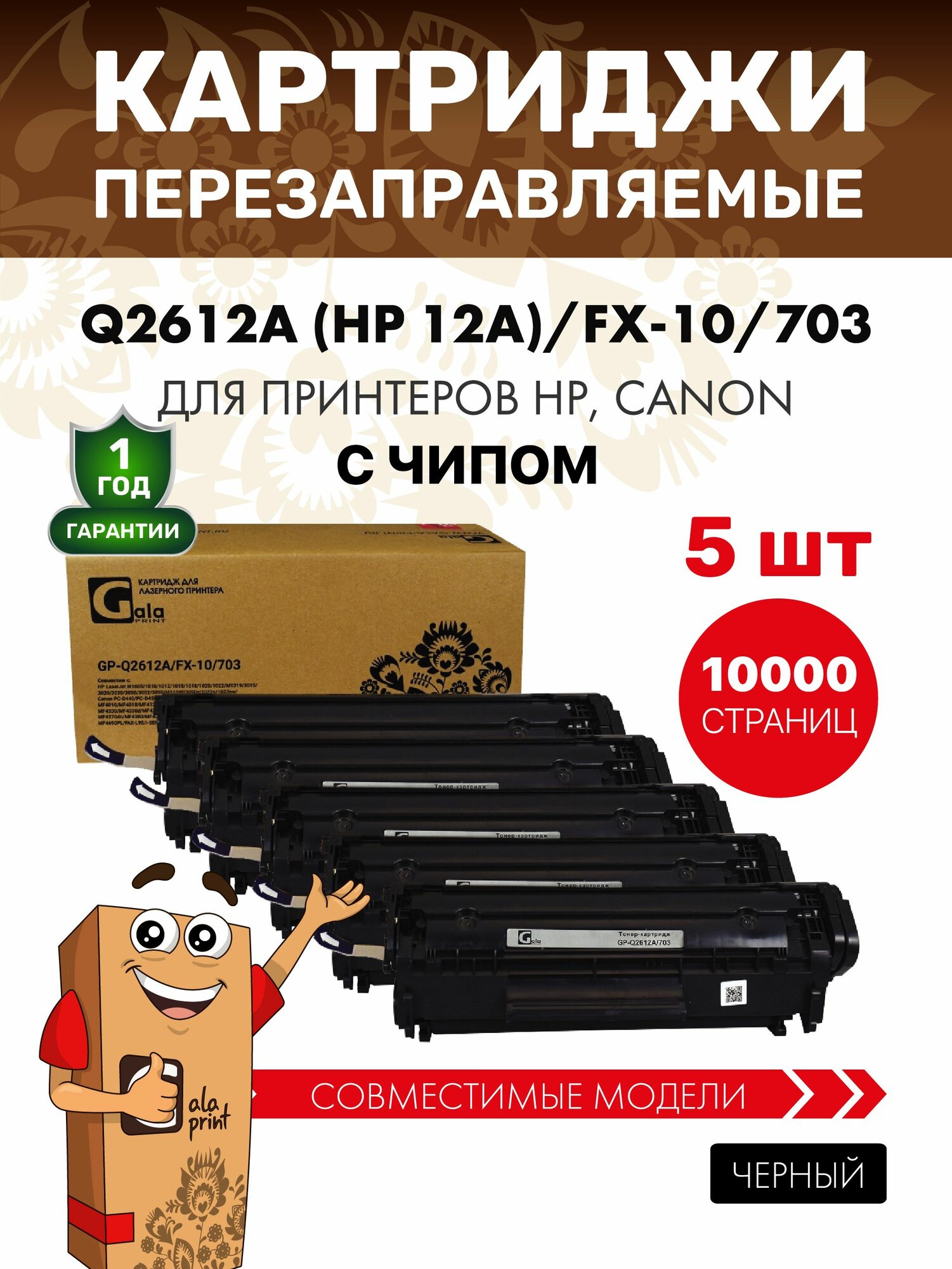 Купить Картридж GalaPrint Q2612A (HP 12A)/FX-10/703 (5 штук) лазерный, совместимый