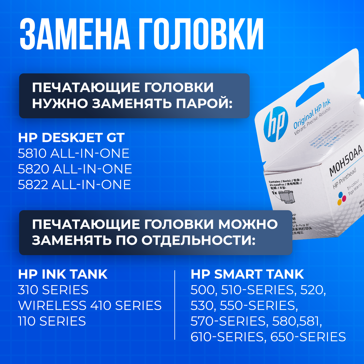 Печатающая головка HP M0H50AA цветная ( M0H50A / 6ZA18AE ) GT51 GT52 для HP Ink Tank 310/410/450, Deskjet GT 5810/5820 и др. интересное: