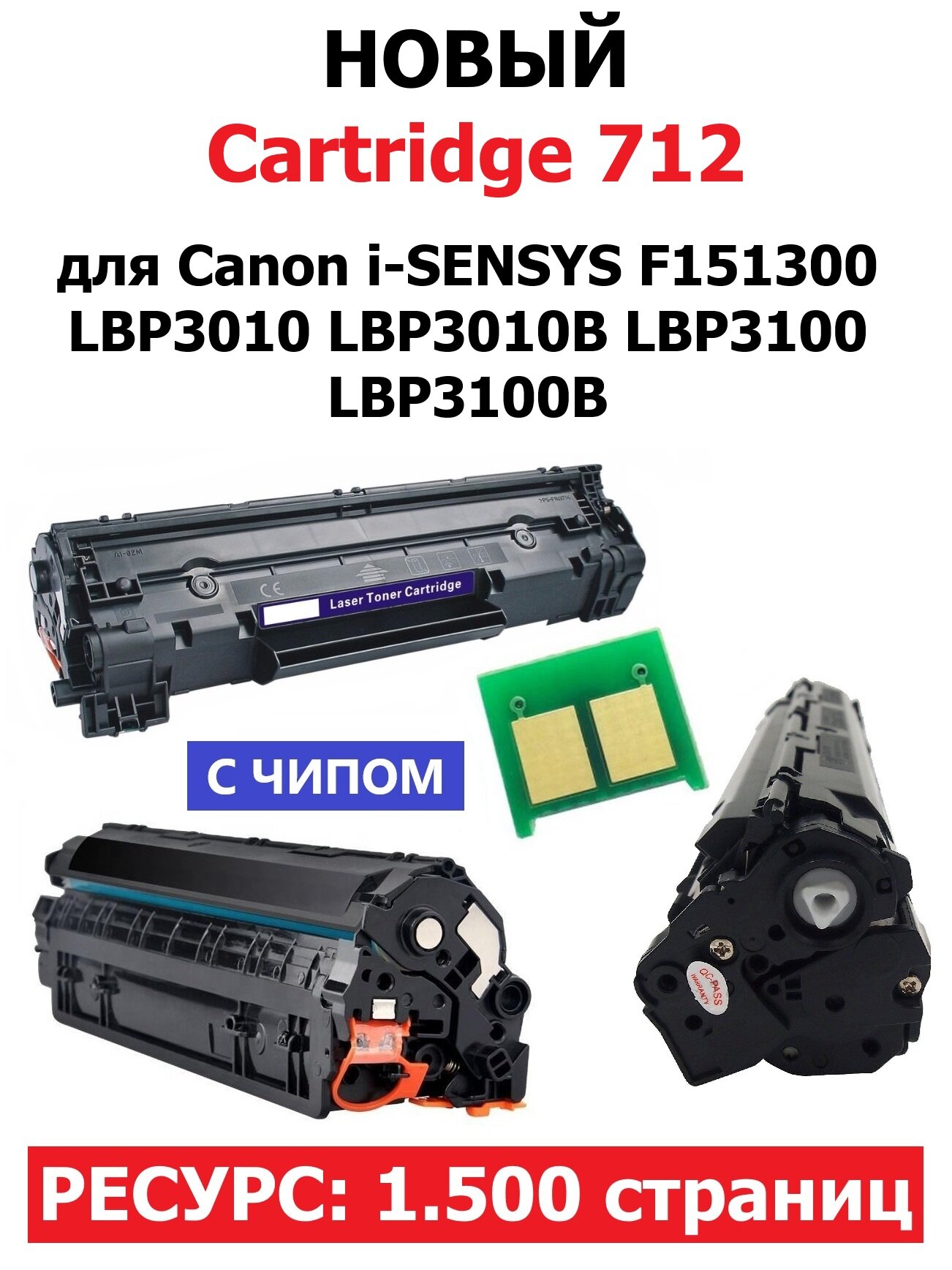 Картридж с чипом для Canon i-SENSYS F151300 LBP3010 LBP3010B LBP3100 LBP3100B Cartridge 712 (1.500 страниц) - UNITON интересное: