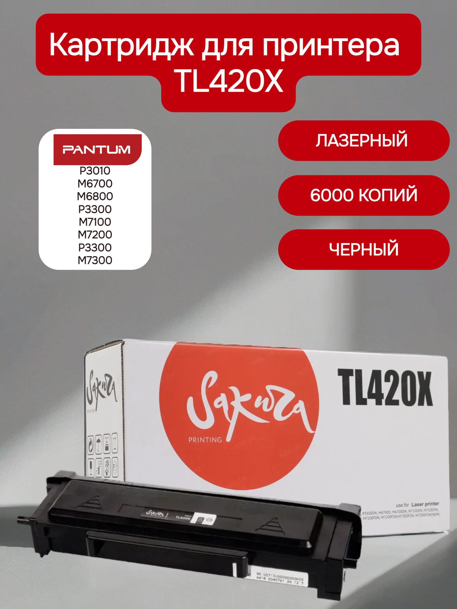 Картридж TL420X для Pantum, лазерный, черный, 6000 страниц, Sakura, с чипом интересное: