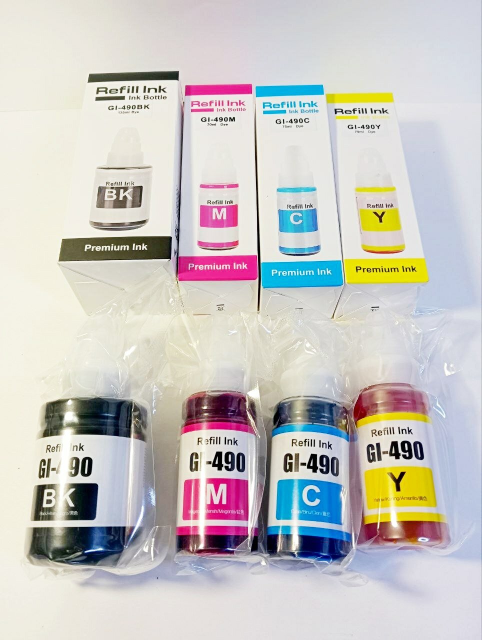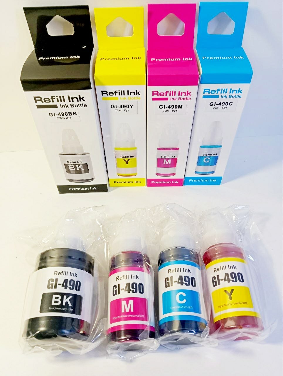 Ниже Вы можете прочитать отзывы на Чернила Premium Refill ink GI-490 набор 4 цвета для Canon G1420, G2420, G2460, G3400, G3460, BK 135мл + CMY 3x70мл, ознакомится с подробными характеристиками, посмотреть интересные обзоры и фотографии на Чернила Premium Refill ink GI-490 набор 4 цвета для Canon G1420, G2420, G2460, G3400, G3460, BK 135мл + CMY 3x70мл.