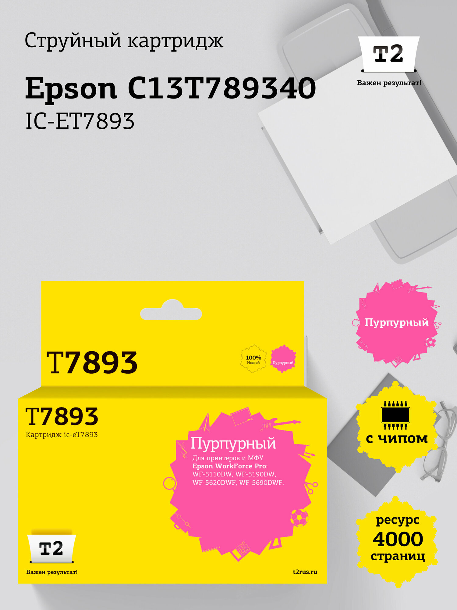 IC-ET7893 Картридж T2 для Epson WorkForce Pro WF-5110DW, 5190DW, 5620DWF, 5690DWF (4000 стр.) пурпурный, с чипом интересное: