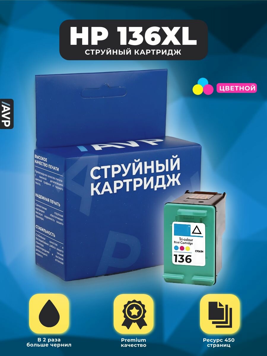 Картридж HP 136 XL (HP 136XL) цветной C9361HE для PhotoSmart C3183 C4183, PSC 1513 1510 интересное: