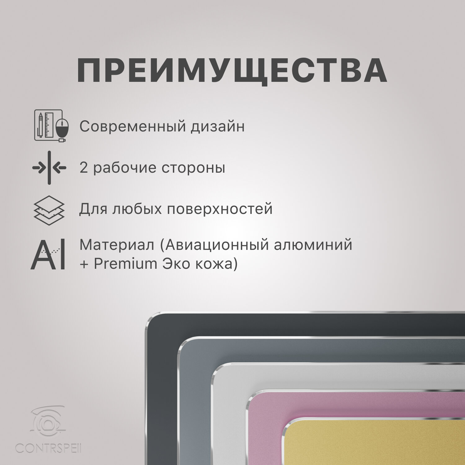 Коврик для мышки алюминиевый, твердый, матовый, серебристый, 23 см x 18 см x 2 мм