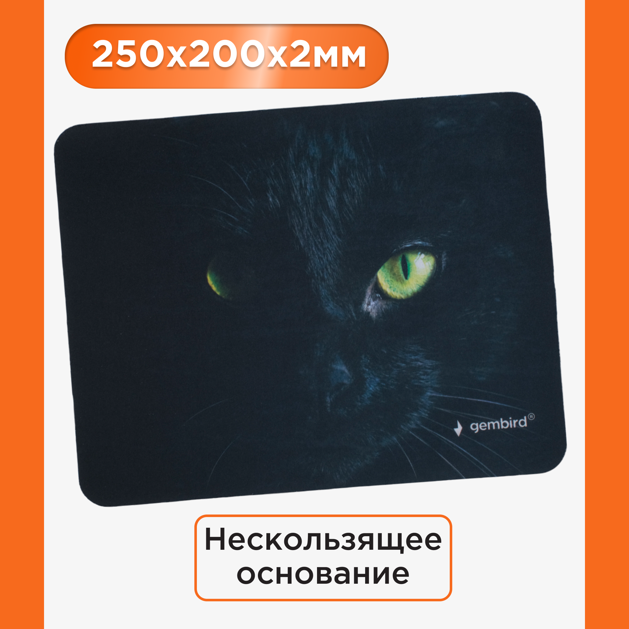 Купить Коврик для мыши Gembird рисунок "черный кот",250х200х2мм MP-ART42
