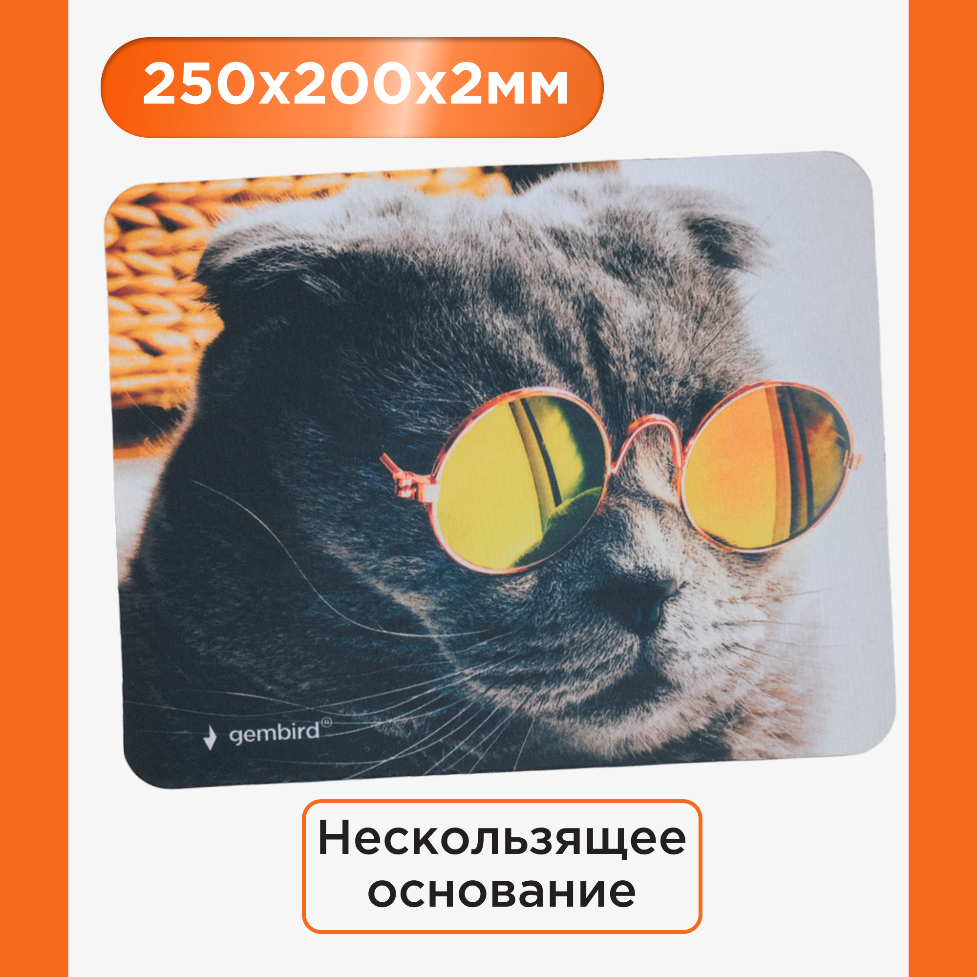 Купить Коврик для мыши Gembird рисунок "кот в очках" 250х200х2мм MP-ART39