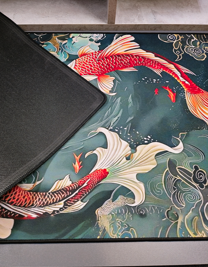 СохранитьБольшой игровой коврик для мышки с принтом, 90х40 см, Карпы с 3D дизайном под клавиатуру и мышь на весь стол. интересное: