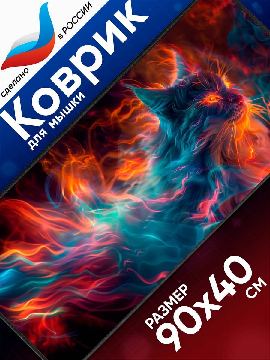 СохранитьБольшой игровой коврик для мышки с принтом, 90х40 см, Мистический кот. Компьютерный ковер с 3D дизайном под клавиатуру и мышь на весь стол. интересное: