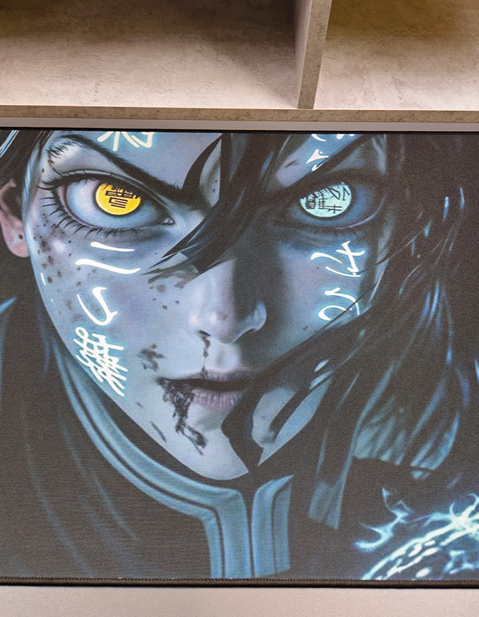 Большой игровой коврик для мышки с принтом, 90х40 см, глаза девушки. Компьютерный ковер под клавиатуру и мышь на весь стол.