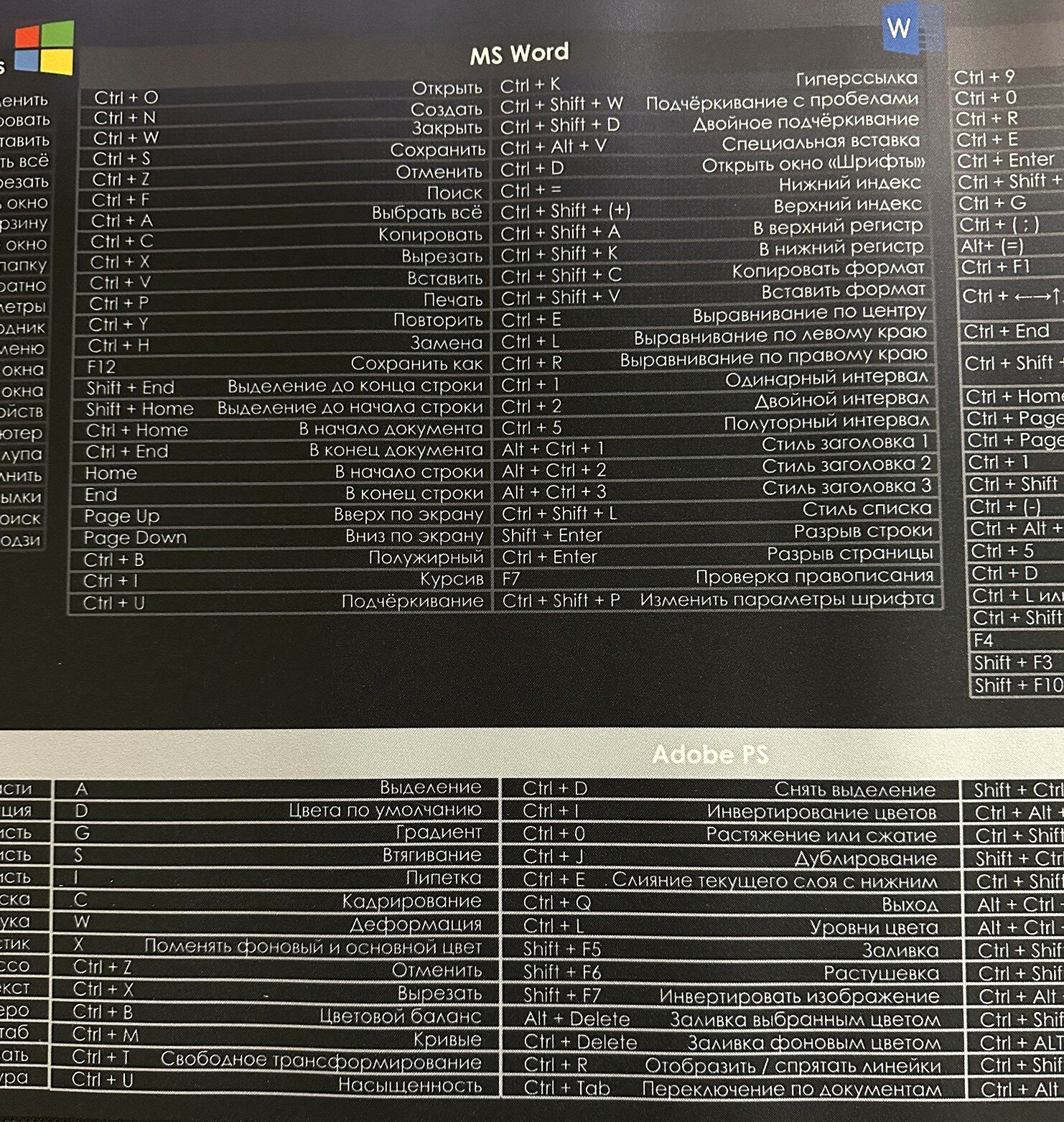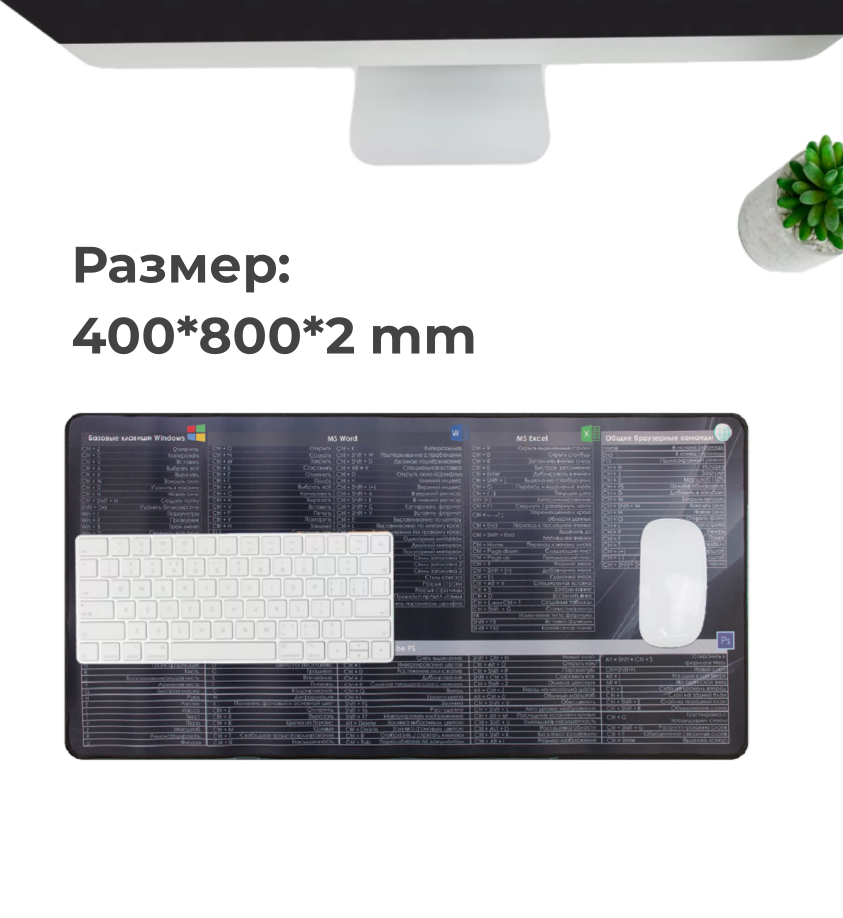 Коврик для мышки и клавиатуры большой Горячие клавиши, компьютерный коврик игровой 400*800, антискользящий, геймерский интересное: