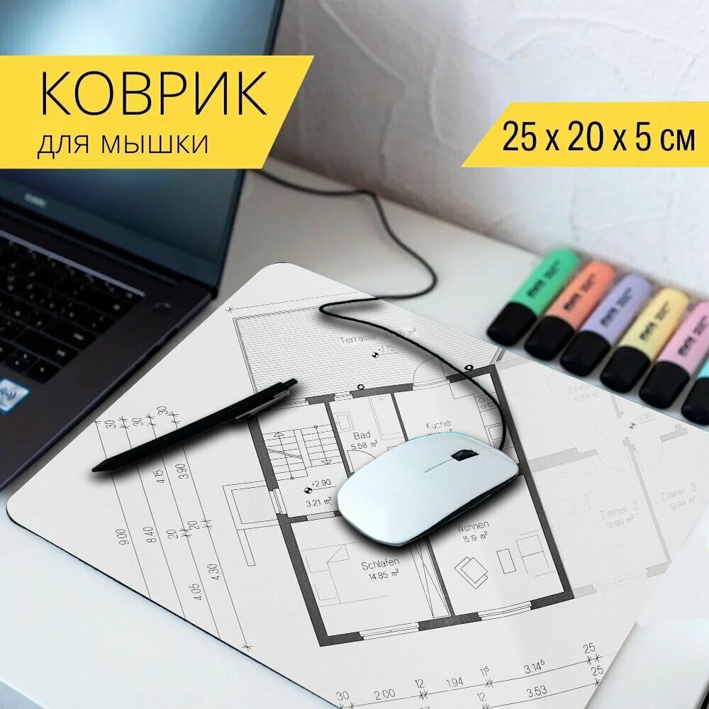 Коврик для мыши с принтом "План, план этажа, план архитектора" 25x20см. интересное:
