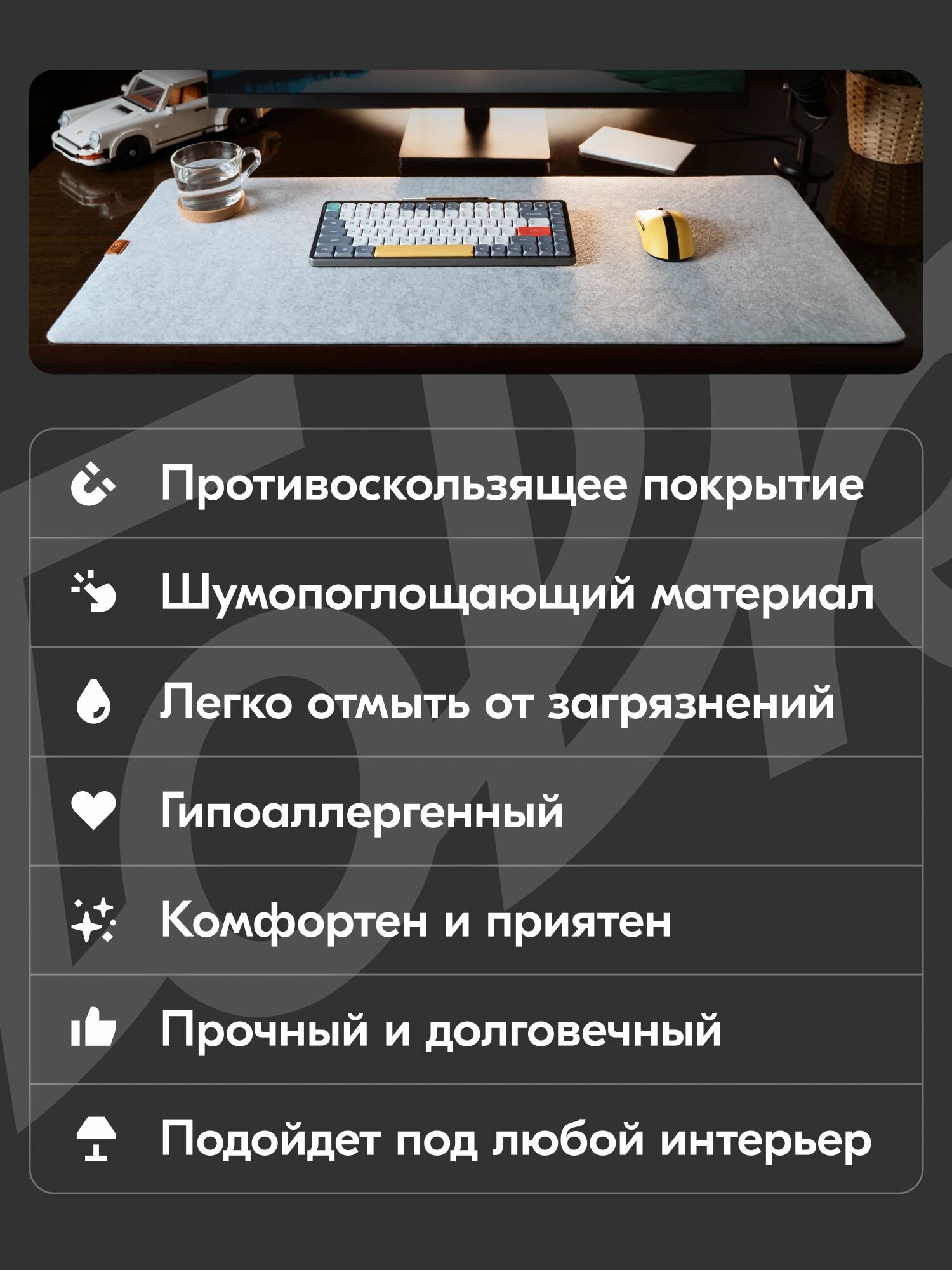 Коврик для мышки 900х400 большой игровой, для клавиатуры и мыши, на стол письменный, белый 90х40, войлочный интересное: