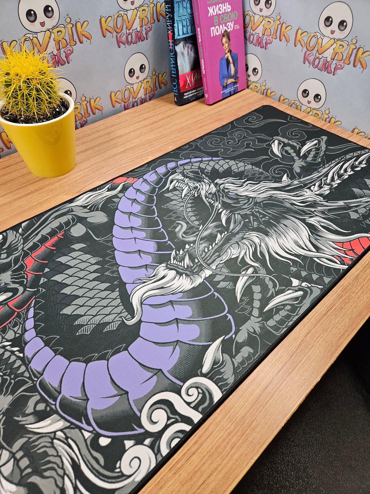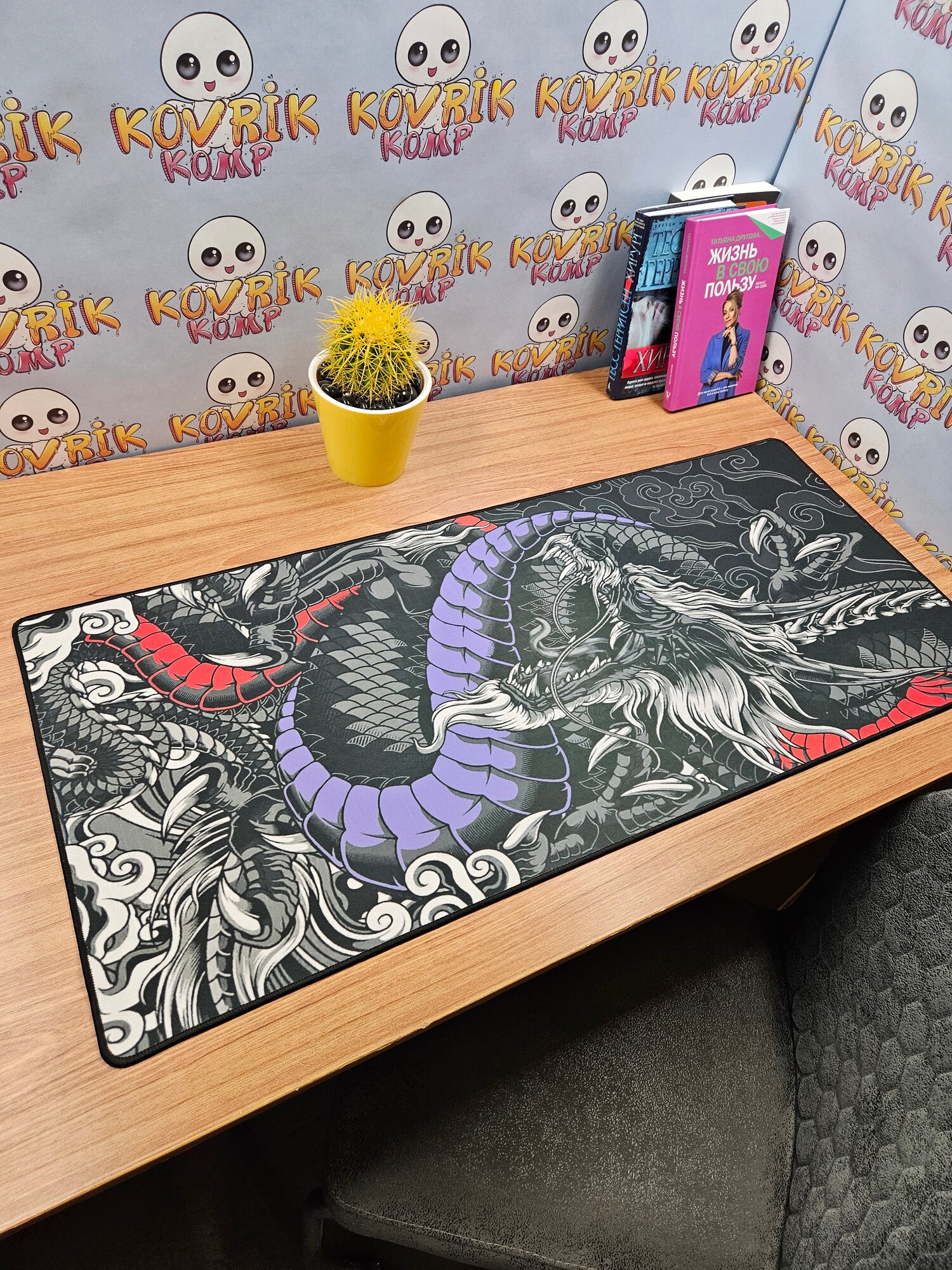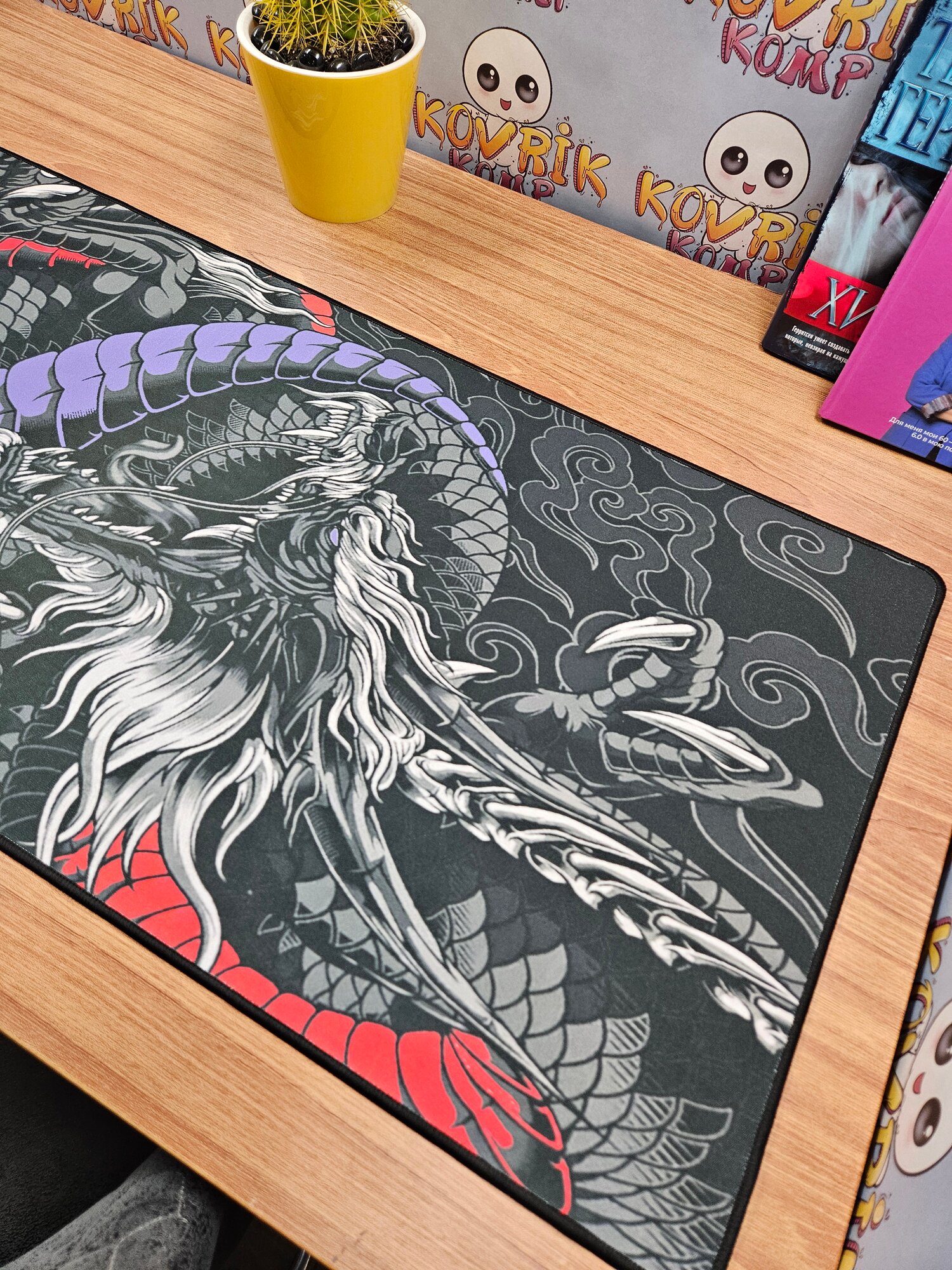 Большой игровой коврик для мышки с принтом, 90х40 см, Дракон красно синий . Компьютерный ковер под клавиатуру и мышь на весь стол. интересное: