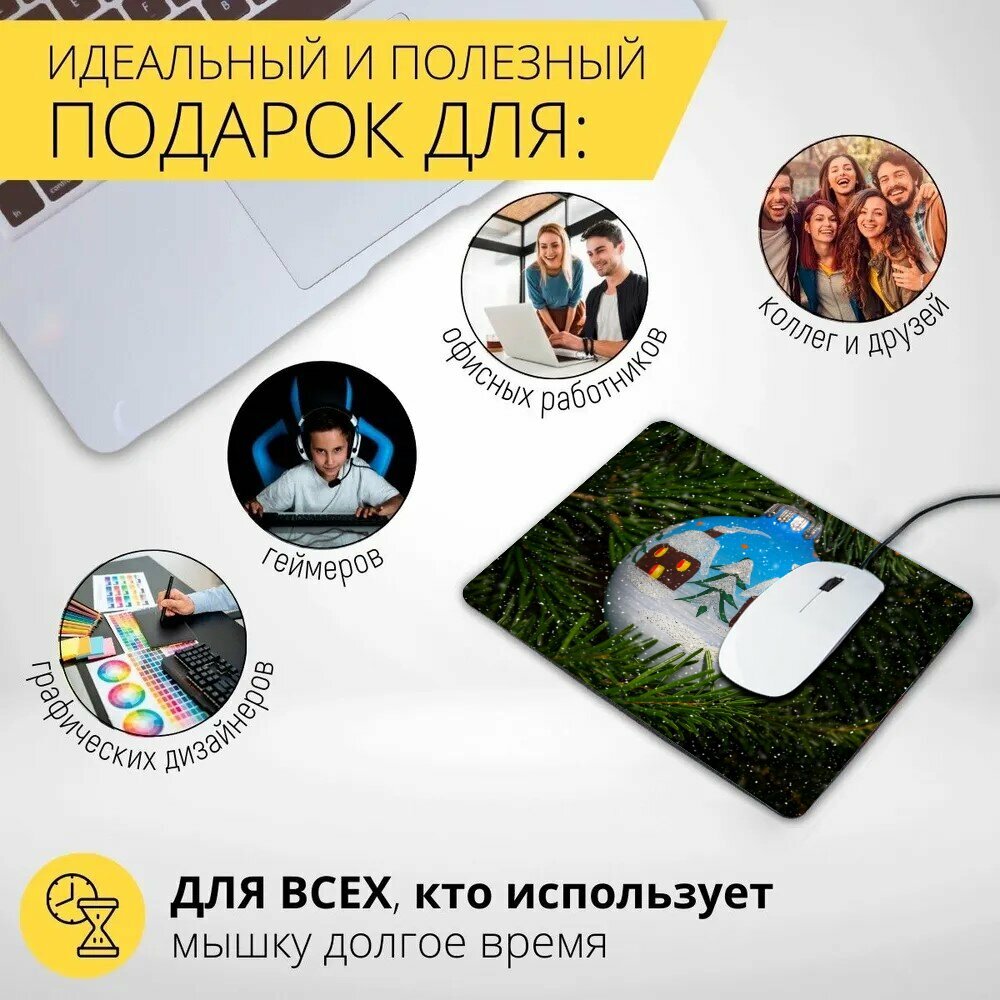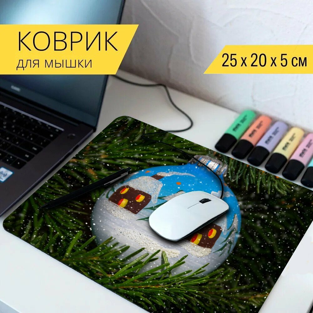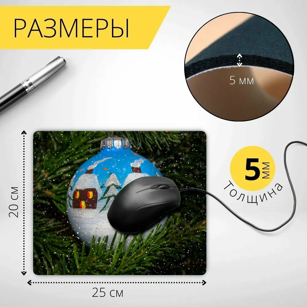 Коврик для мыши с принтом "Пуля, ручная роспись, игрушки на елку" 25x20см. интересное: