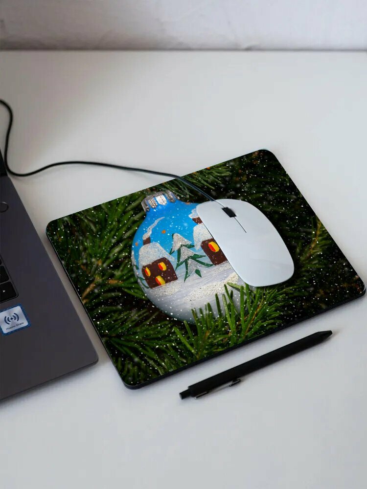 Купить Коврик для мыши с принтом "Пуля, ручная роспись, игрушки на елку" 25x20см.