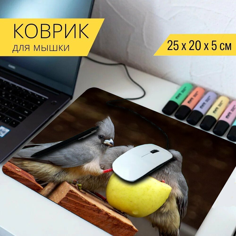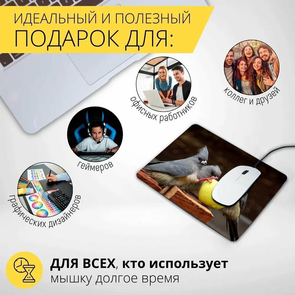 Коврик для мыши с принтом "Птицы, белоспинка, фрукты" 25x20см. интересное: