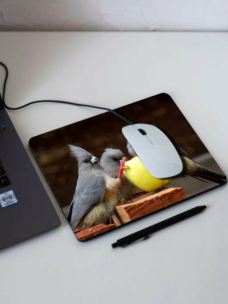 Купить Коврик для мыши с принтом "Птицы, белоспинка, фрукты" 25x20см.