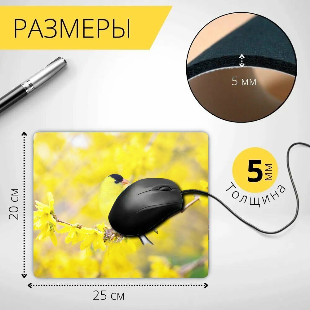Коврик для мыши с принтом "Весна птица, птица, весна" 25x20см. интересное:
