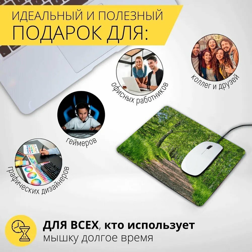 Коврик для мыши с принтом "Дорожка, лес, лесная тропа" 25x20см. интересное: