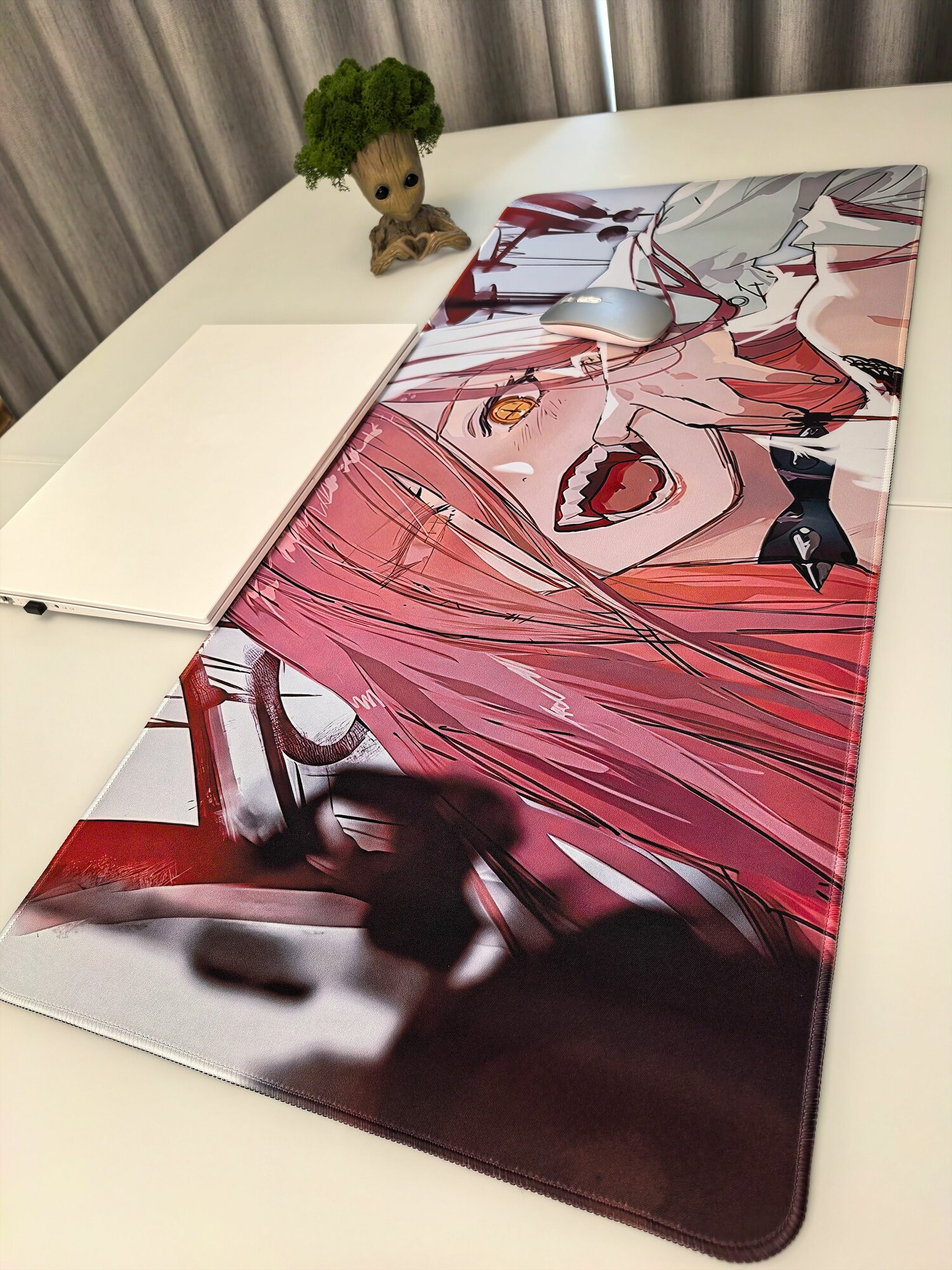 Игровой коврик для мыши большой, розовый, аниме Power. Размер 800х300x3