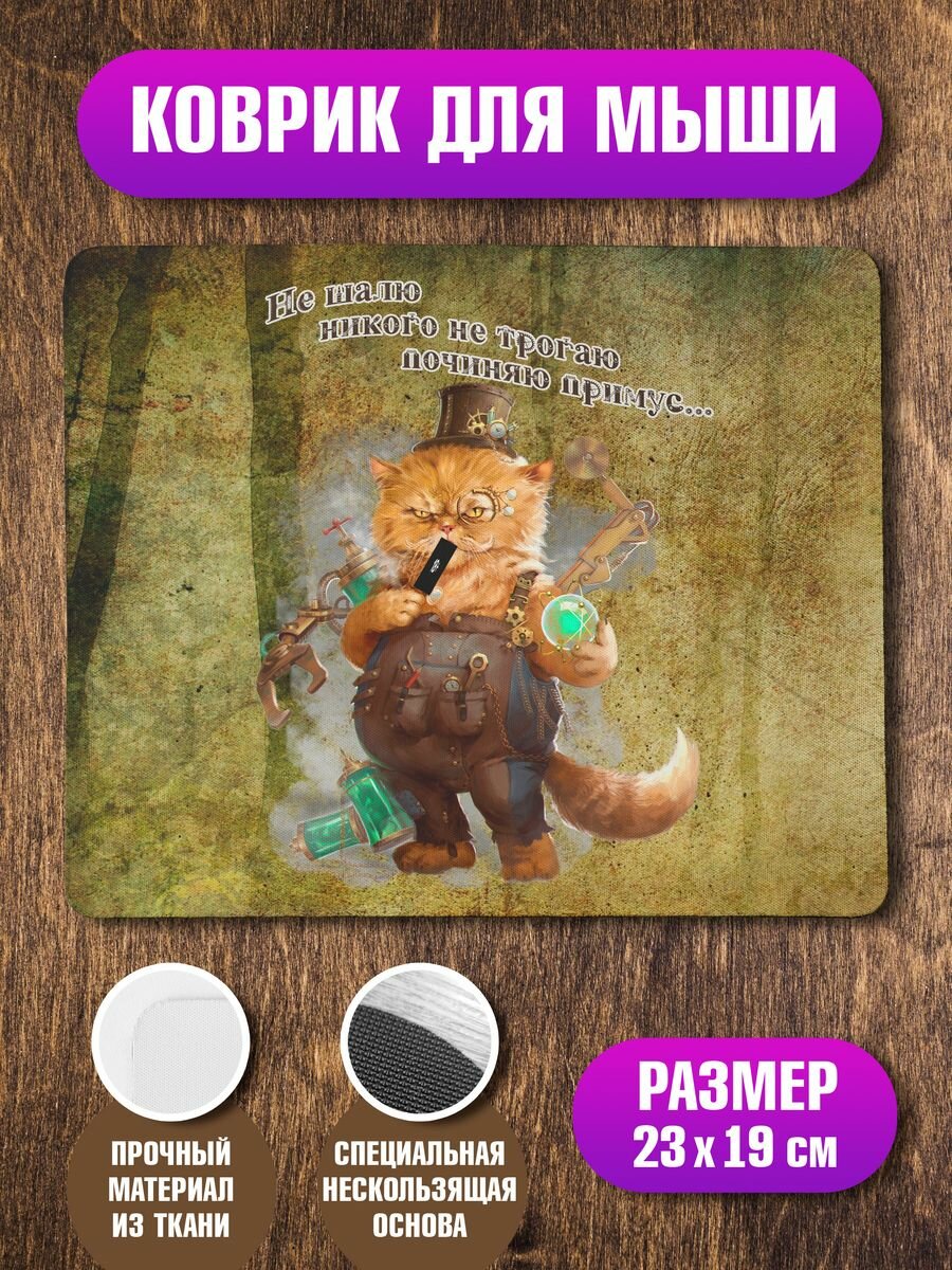 Купить Коврик для компьютерной мыши Кот бегемот, игровой, нескользящая основа, 23х19х0.4 см