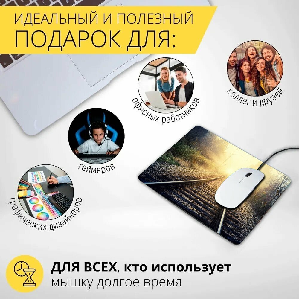 Коврик для мыши с принтом "Надеяться, солнечные лучи, рельсы" 25x20см. интересное: