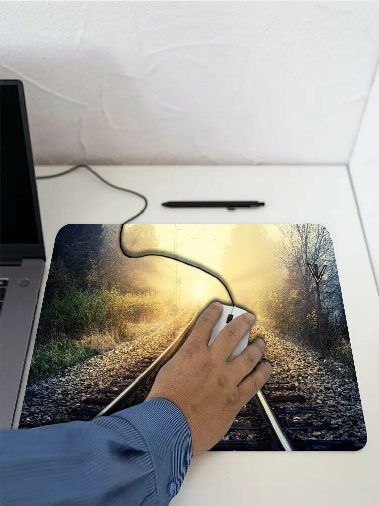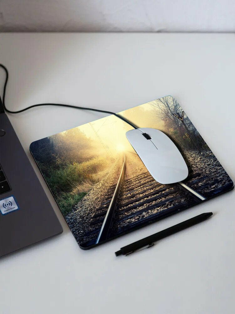 Купить Коврик для мыши с принтом "Надеяться, солнечные лучи, рельсы" 25x20см.