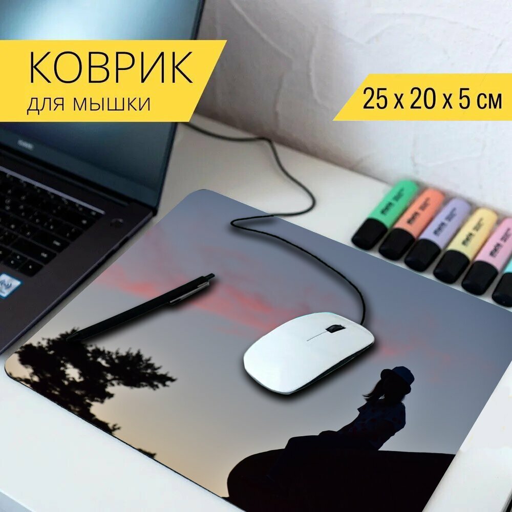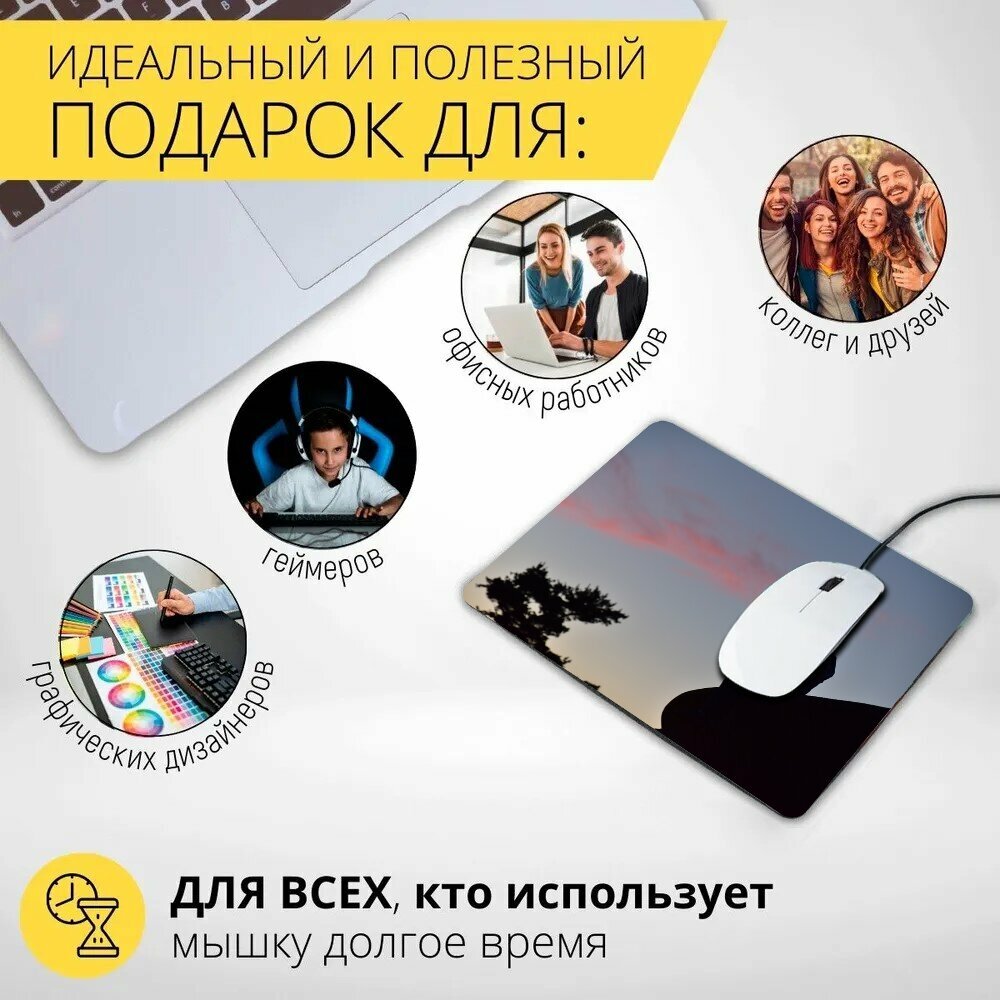 Коврик для мыши с принтом "Силуэты, закатное сияние, подсветка" 25x20см. интересное: