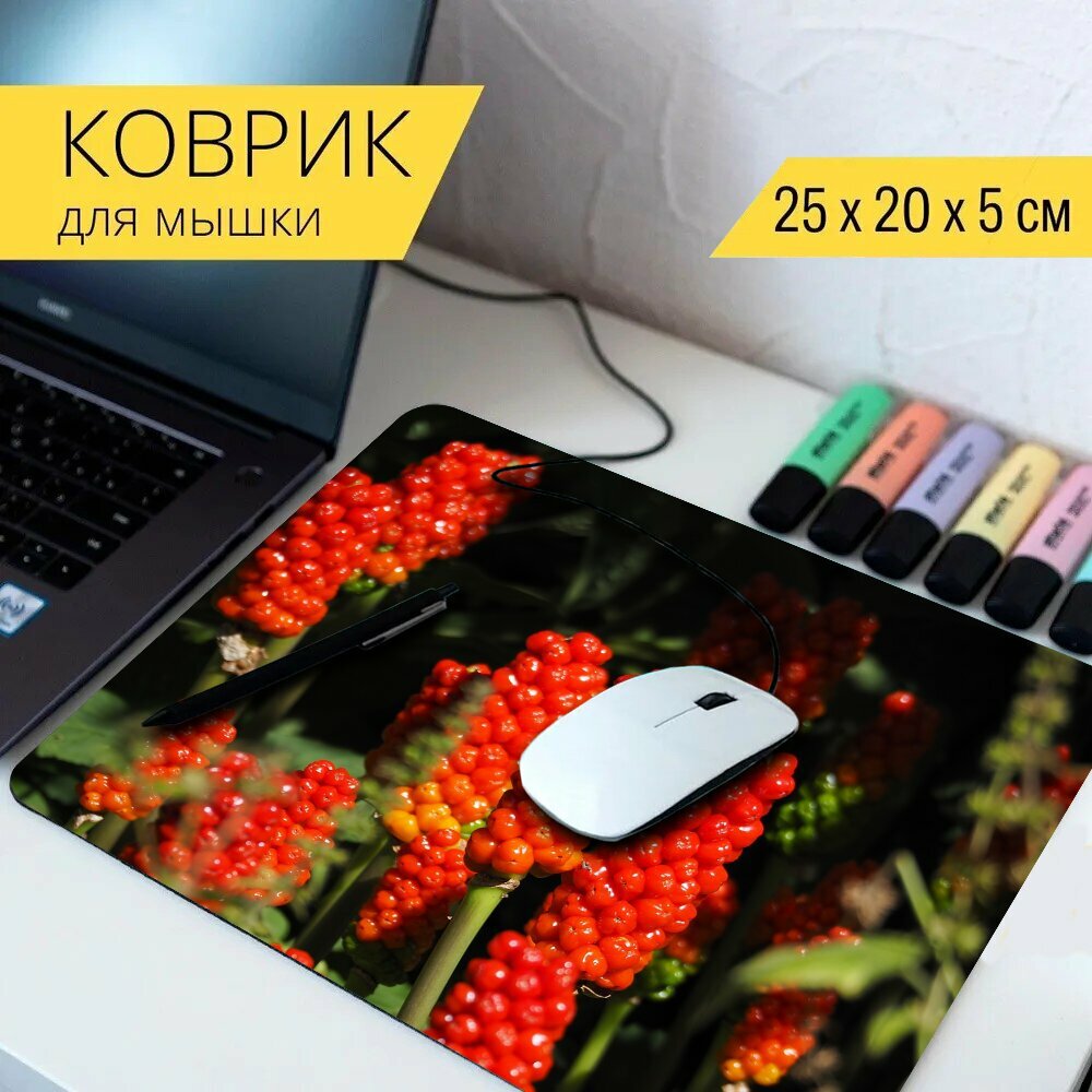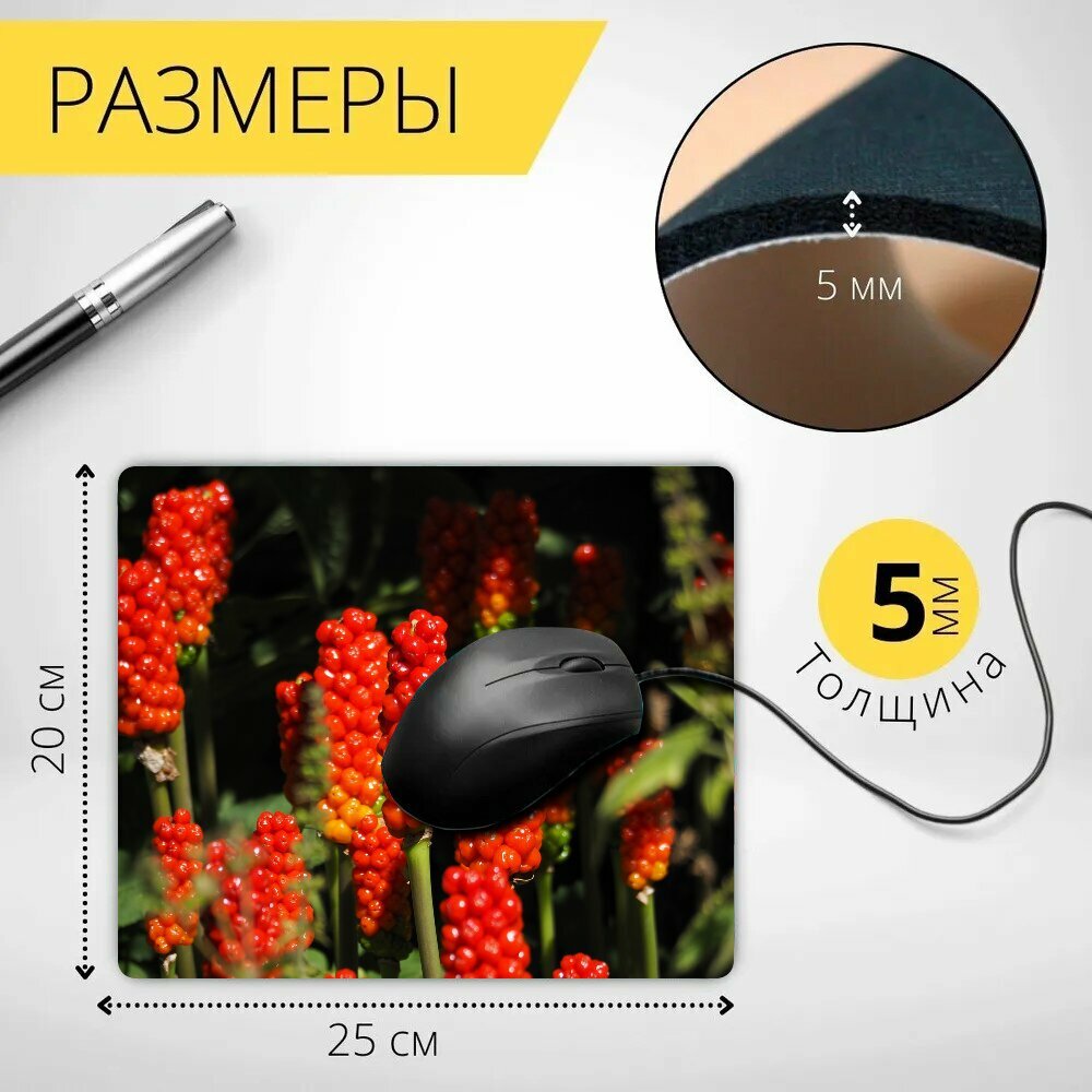Коврик для мыши с принтом "Природа, ягоды, аронник" 25x20см. интересное:
