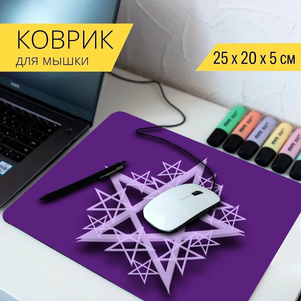 Коврик для мыши с принтом "Пентакль, фиолетовый, викка" 25x20см. интересное: