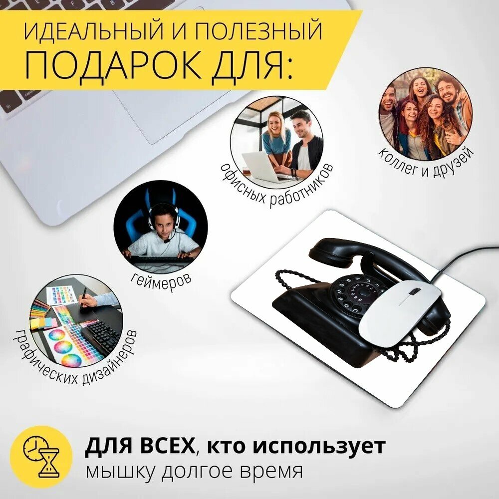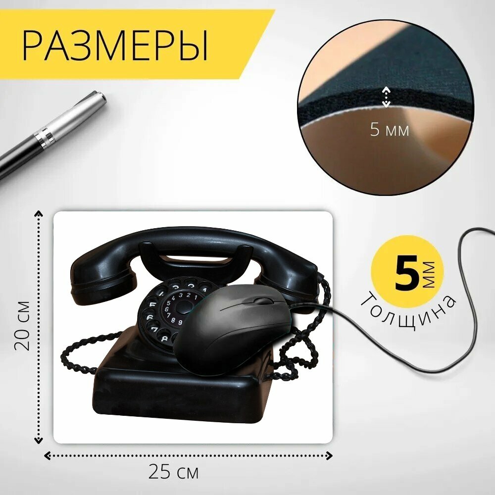 Коврик для мыши с принтом "Телефон, старый, телефонная трубка" 25x20см. интересное: