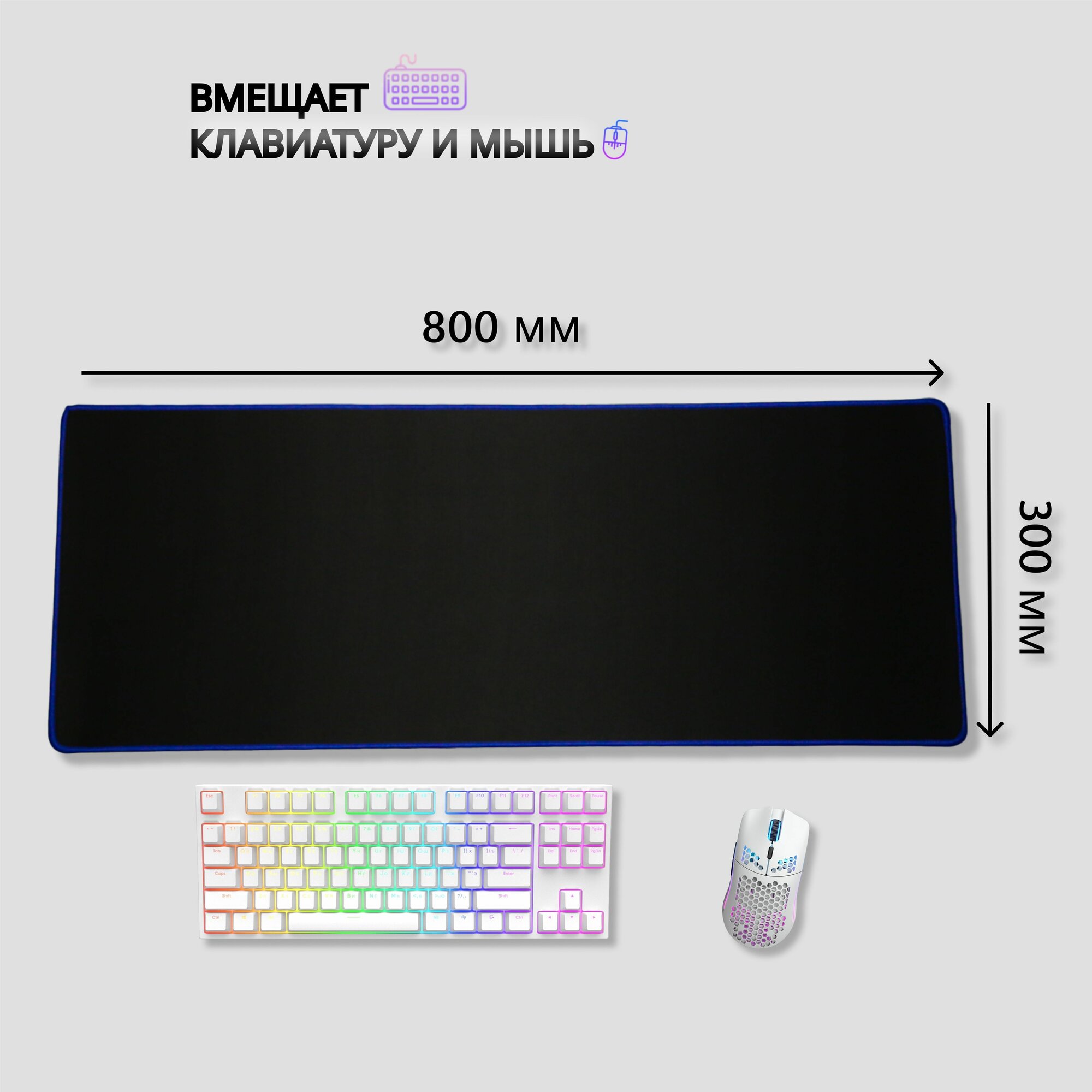 Большой коврик для мыши черный с синими краями 800х300х4 интересное: