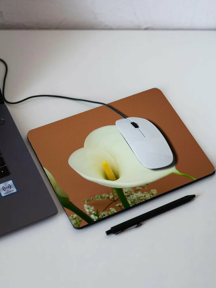 Купить Коврик для мыши с принтом "Кала, белый цветок, срезанный цветок" 25x20см.