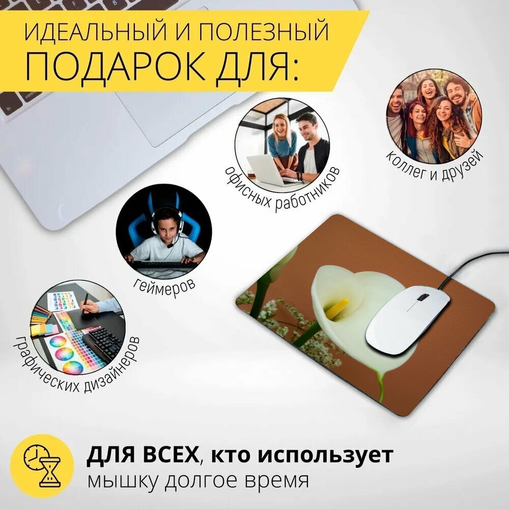 Коврик для мыши с принтом "Кала, белый цветок, срезанный цветок" 25x20см. интересное: