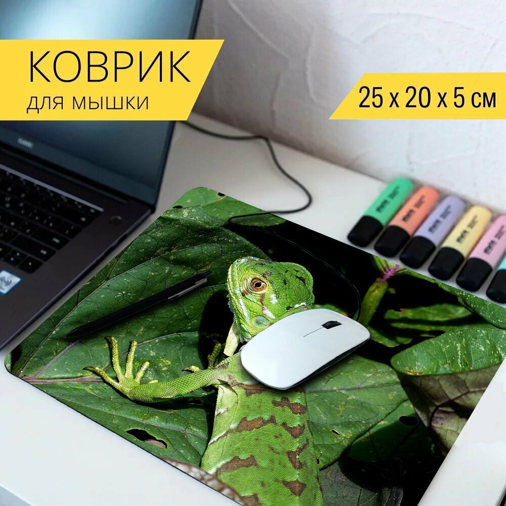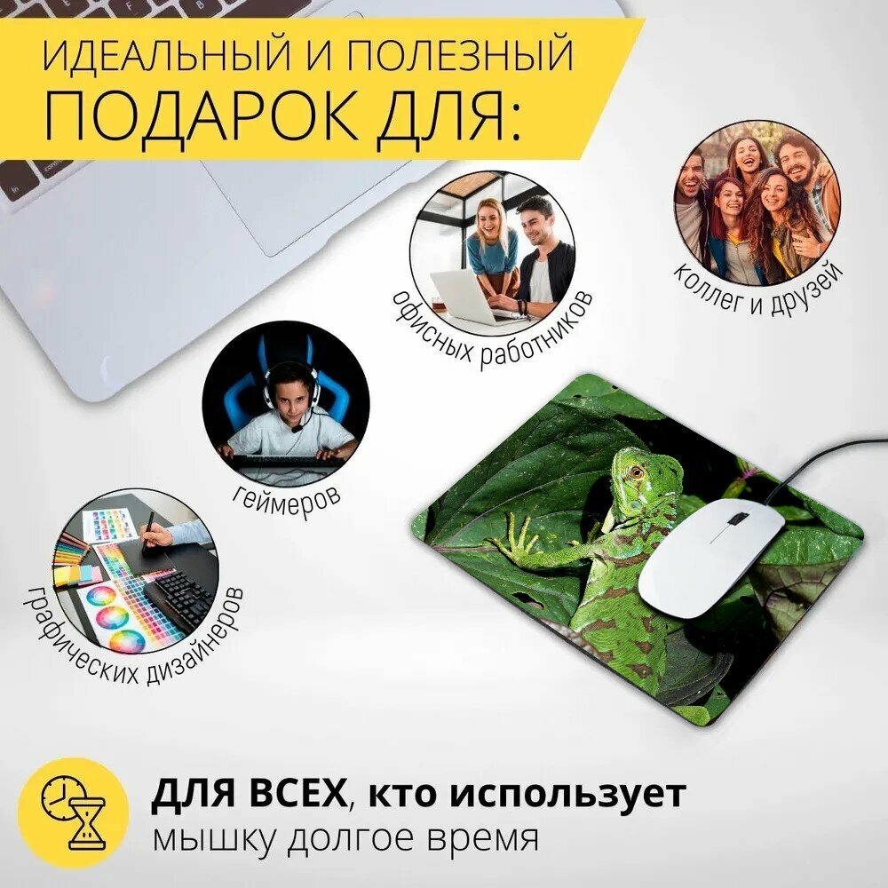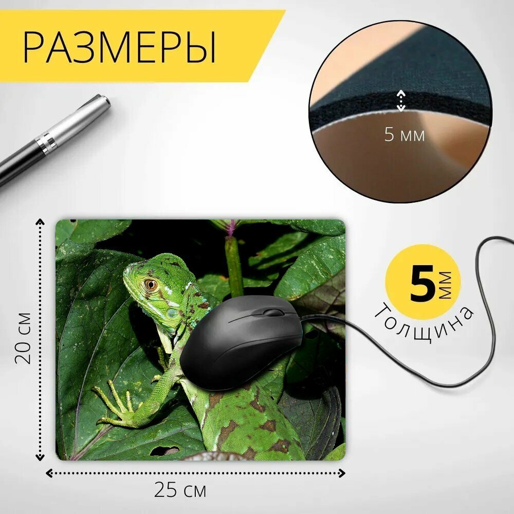 Коврик для мыши с принтом "Ящерица, рептилия, зеленый" 25x20см. интересное: