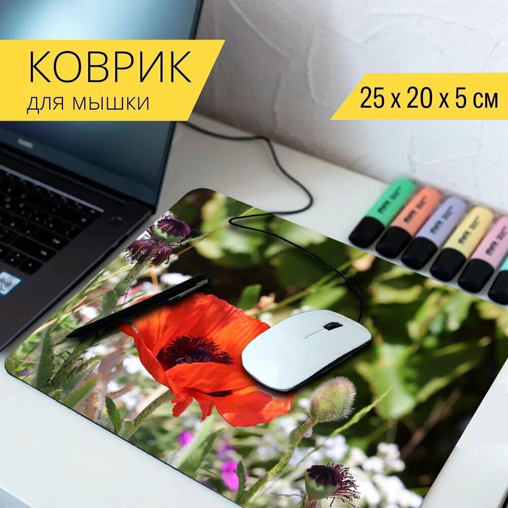 Коврик для мыши с принтом "Мак, луг, цветы" 25x20см. интересное: