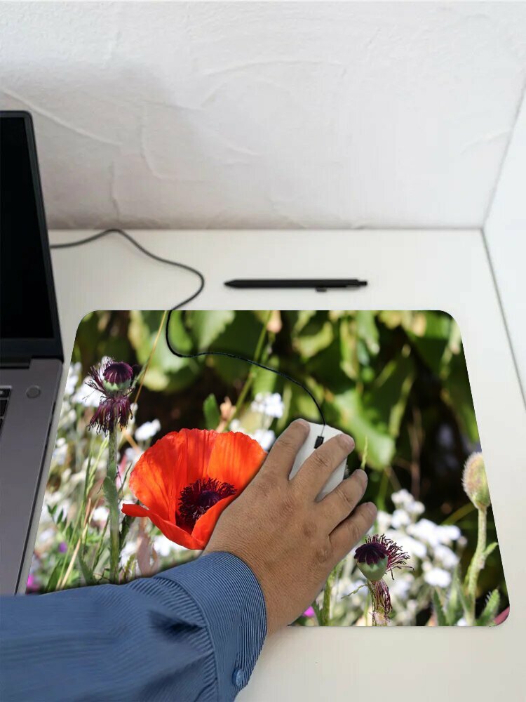 Купить Коврик для мыши с принтом "Мак, луг, цветы" 25x20см.