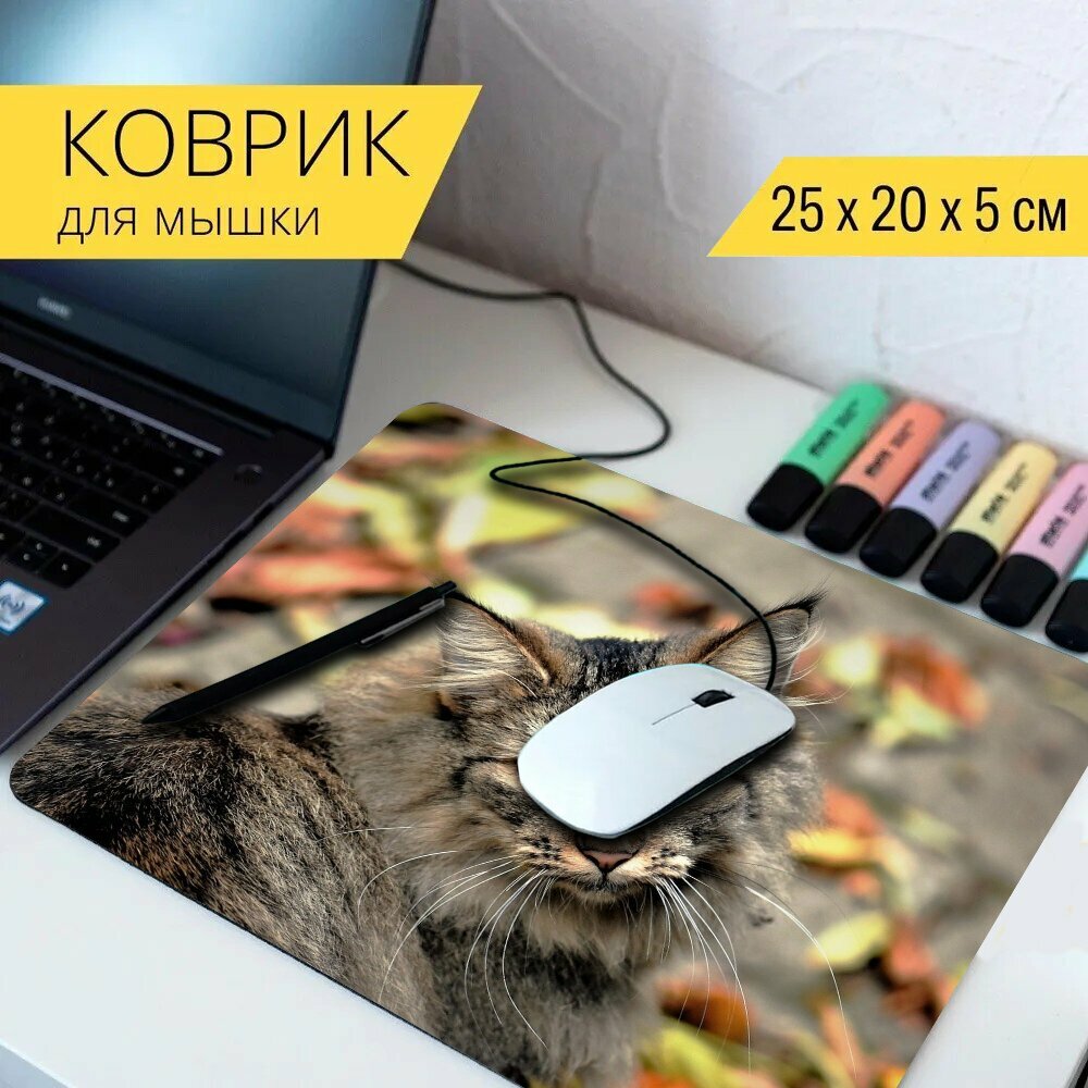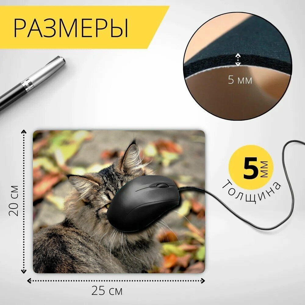 Коврик для мыши с принтом "Кот, соседние кошки, дикий кот" 25x20см. интересное:
