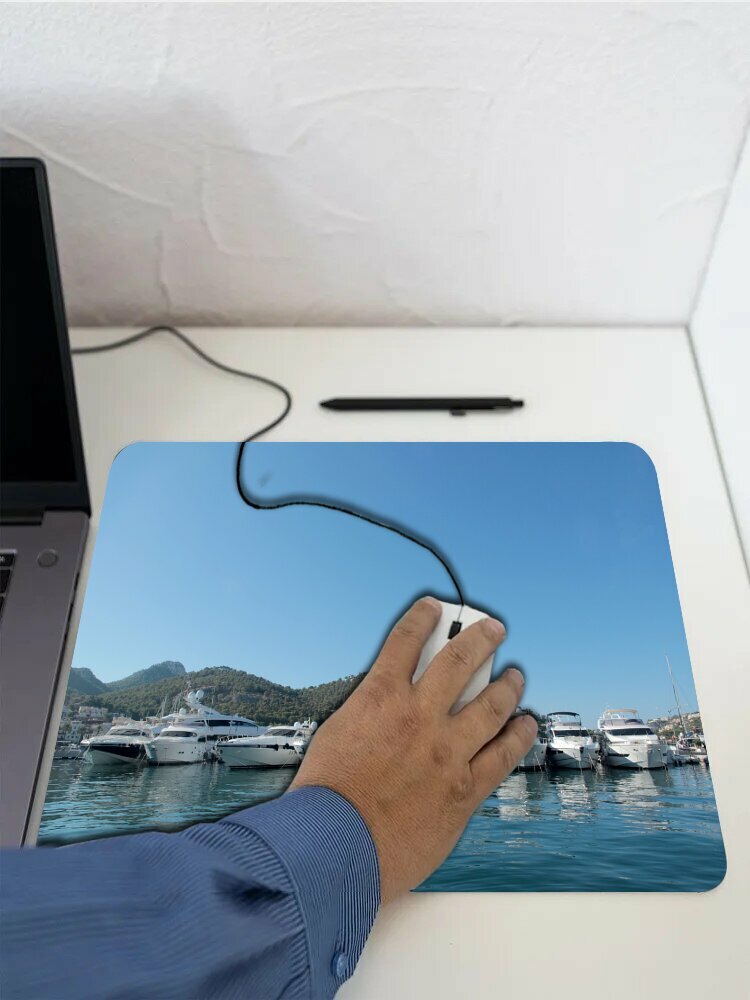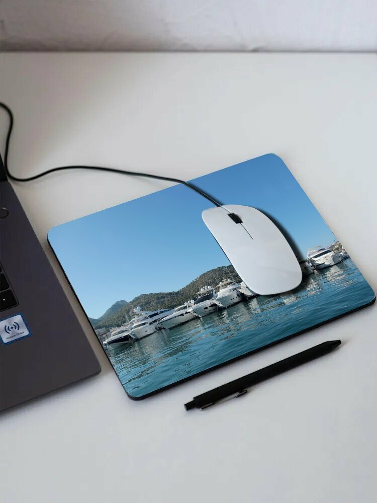 Купить Коврик для мыши с принтом "Яхта, марина, порт" 25x20см.