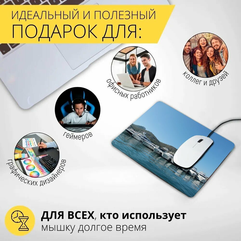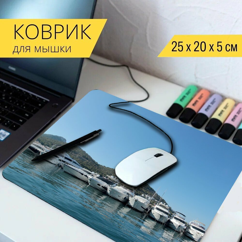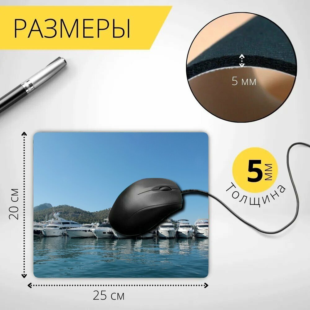 Коврик для мыши с принтом "Яхта, марина, порт" 25x20см. интересное: