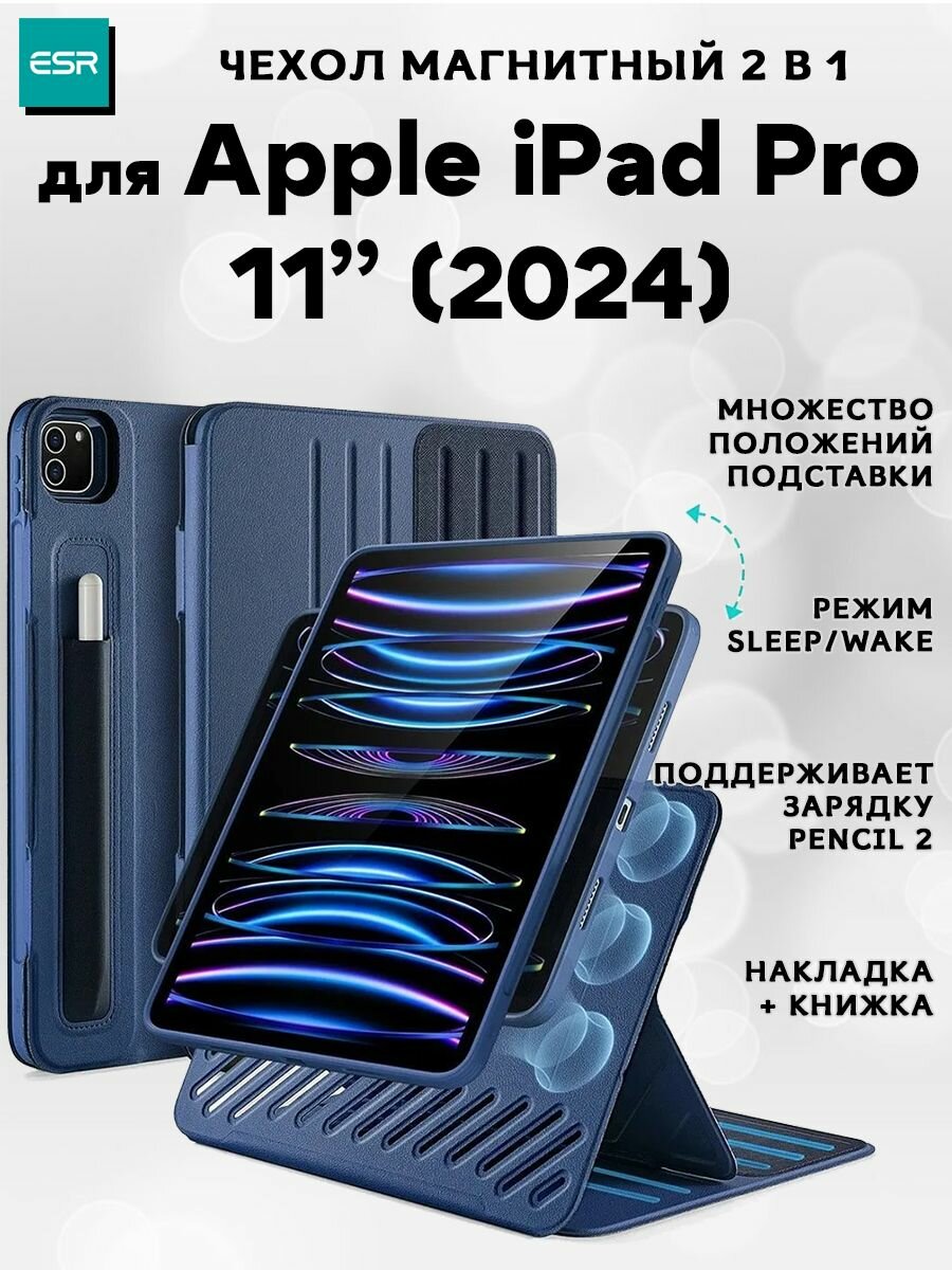 СохранитьЧехол книжка ESR Shift Magnetic Case, 2 в 1, с держателем для стилуса, для Apple iPad Pro 11 (2024) - синий интересное:
