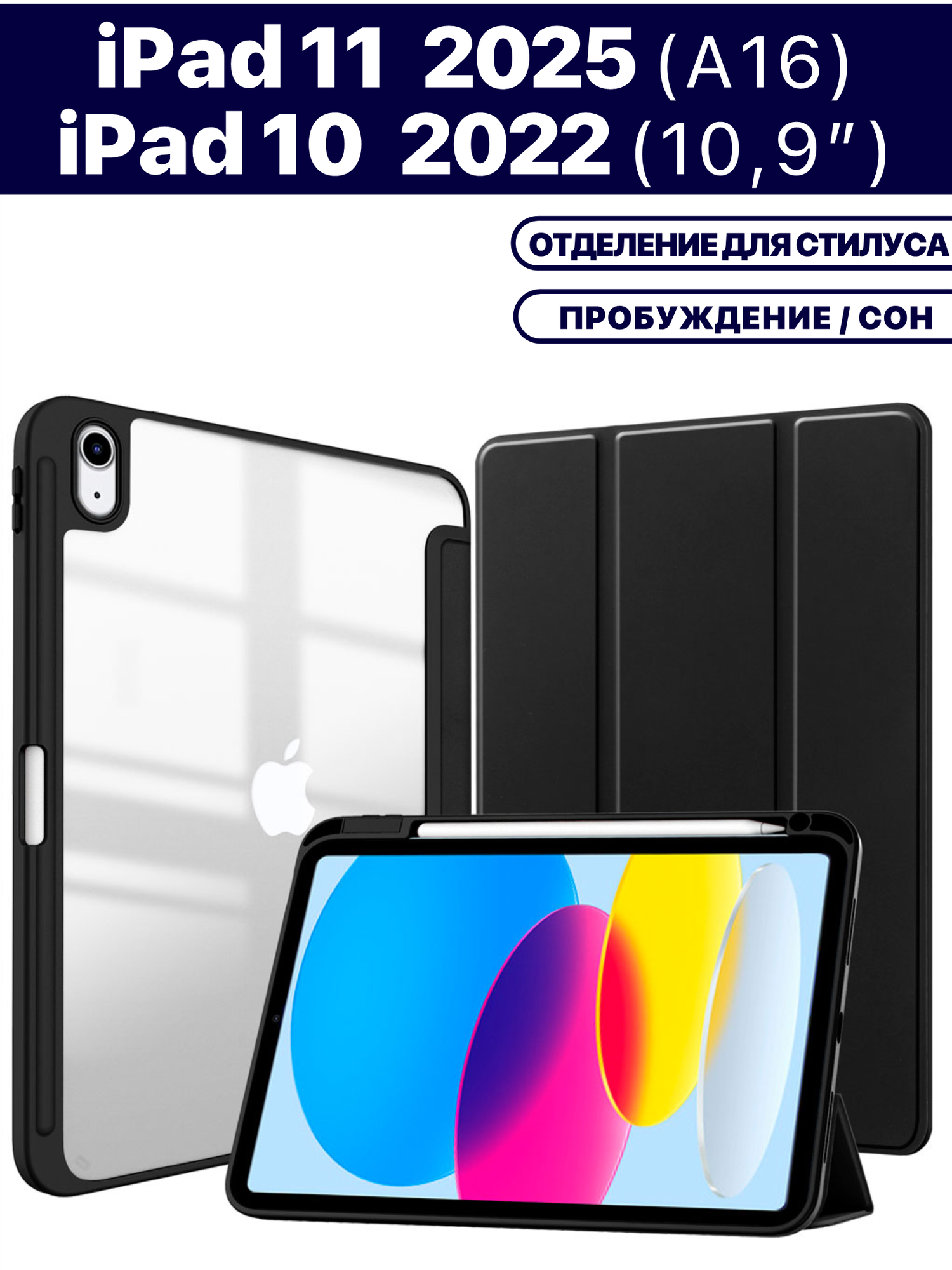 СохранитьЧехол для планшета Apple iPad 2025 (A16), iPad 10 2022 (A3354 A3355 A3356 A2696 A2757 A2777) 10.9", микрофибра, держатель для стилуса (черный) интересное: