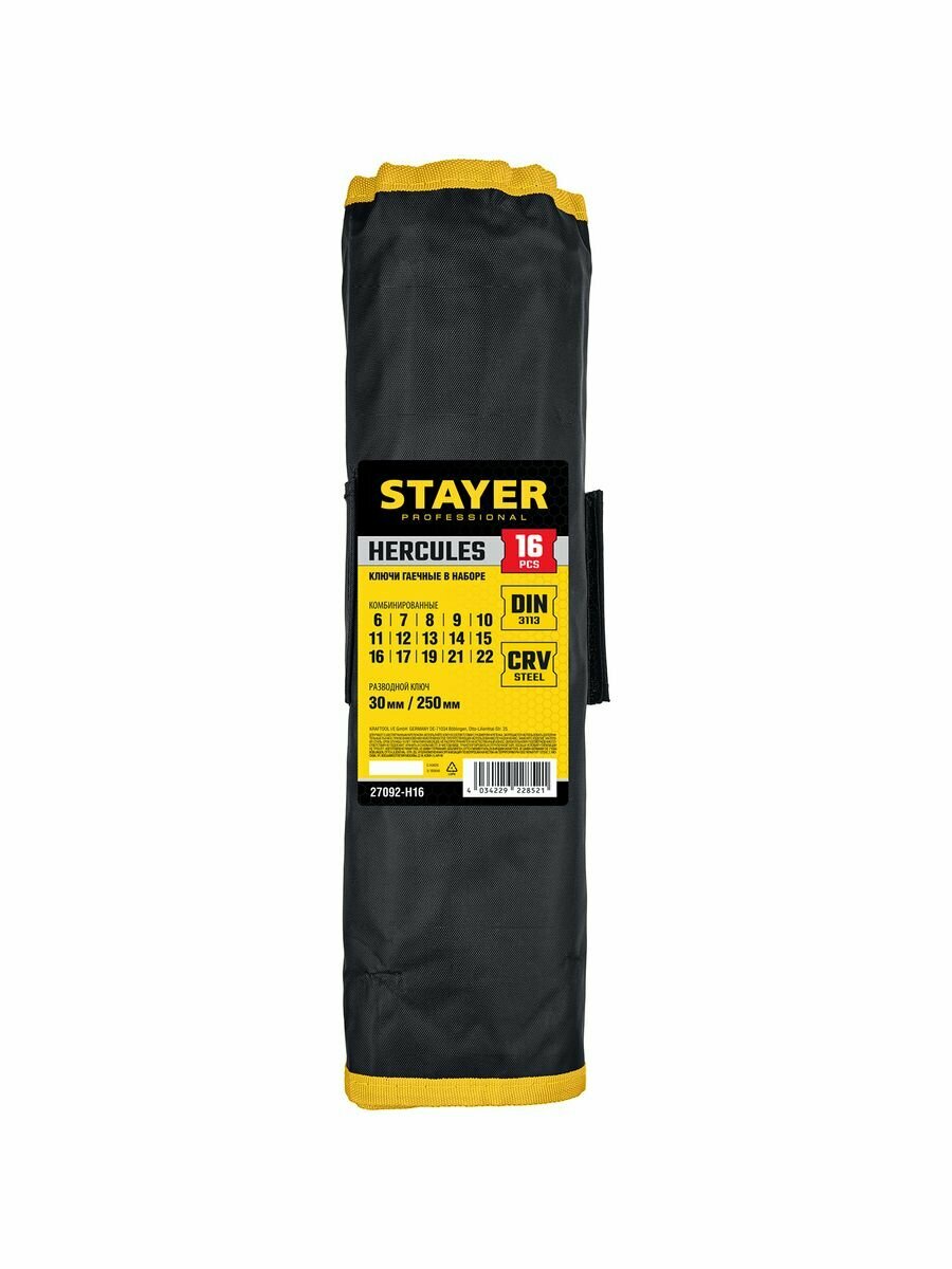 STAYER HERCULES, 16 шт, 6 - 30 мм, набор комбинированных и разводных гаечных ключей, Professional (27092-H16)